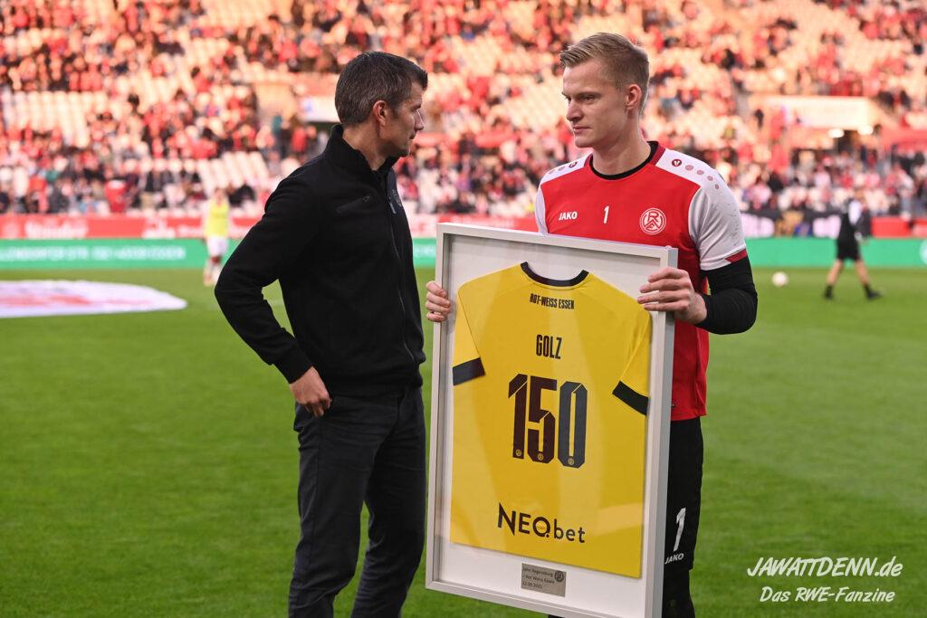 Es sind nicht mehr viele Fußballer bei Rot-Weiss Essen, die die Viertklassigkeit noch miterlebt haben, da RWE glücklicherweise bereits im vierten Jahr in der Dritten Liga spielt. Einer derjenigen, der dem Verein so lange die Treue gehalten hat, ist Jakob Golz, der aktuell seine siebte Saison in Essen spielt. Schon lang ist er Publikumsliebling und wird auch bei unabhängigen Berichterstattern als einer der besten Torhüter der Dritten Liga gesehen. Er nahm sich Zeit und berichtet im Jawattdenn.de-Interview über seinen Beginn bei RWE, seine Verbindung zum Verein und der Stadt sowie seine Sicht auf das anstehende Derby: