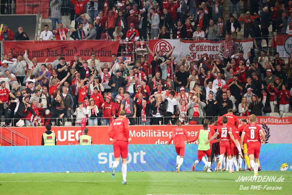 Um ca. 21:20 Uhr erbebten Bergeborbeck und das angrenzende Vogelheim. Thomas Eisfeld knallte in der dritten Minute der Nachspielzeit einen klugen Rückpass von Cedric Harenbrock wuchtig in den Münsteraner Kasten und RWE hatte damit das alles entscheidende Momentum auf seiner Seite. Kurz darauf feierte ganz Fußball-Essen frenetisch den Sieg über den Erzrivalen. Unser Spielbericht ist online.
