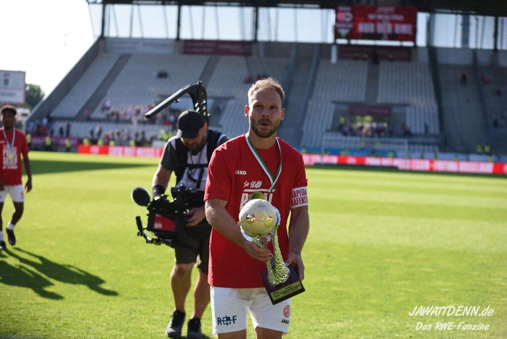 „Auch als Wuppertaler kann man 1907% Ruhrpott und Rot-Weiss Essen verkörpern.“ – so wurde in der Jawattdenn.de-Huldigung nach dem Aufstieg Felix Herzenbruch beschrieben. Auch in dieser Saison hat Felix Herzenbruch einen enormen Anteil am Klassenerhalt und führte die Mannschaft zu Saisonende als Kapitän aufs Feld. Im großen Abschiedsinterview spricht Felix Herzenbruch über seine Saisonhighlights, den Aufstieg mit RWE und seine Zukunftspläne. Viel Spaß mit dem Interview: