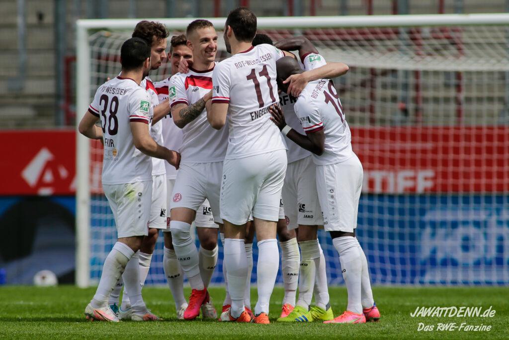 Hausaufgaben gemacht, drei Punkte im Tal geholt. RWE gewinnt mit einer bärenstarken Leistung beim Wuppertaler SV mit 2:1. Da das Spiel der Borussen quarantänebedingt nicht stattfinden konnte, beträgt der Abstand zur Spitze aktuell nur noch einen Punkt. #immeRWEiter