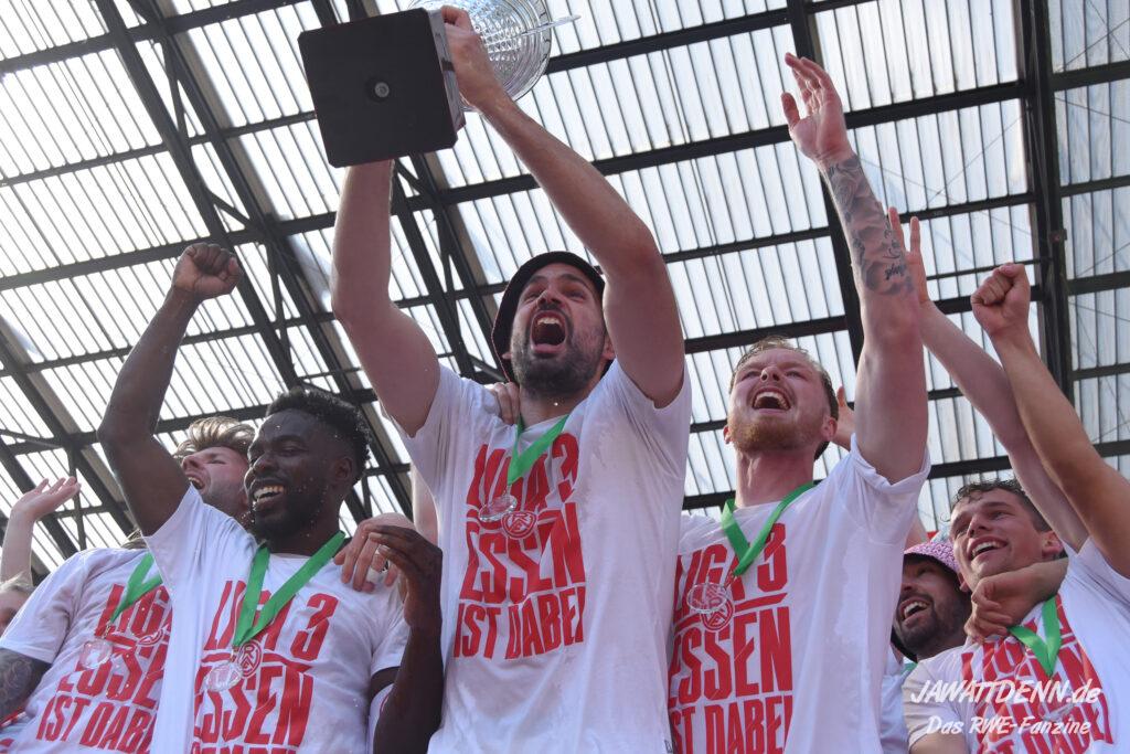 Es ist geschafft. Rot-Weiss Essen steigt in die 3. Liga auf. Wir hoffen ihr habt alle gut gefeiert. Unsere Fotos sind online und mittlerweile haben wir auch einen Spielbericht.