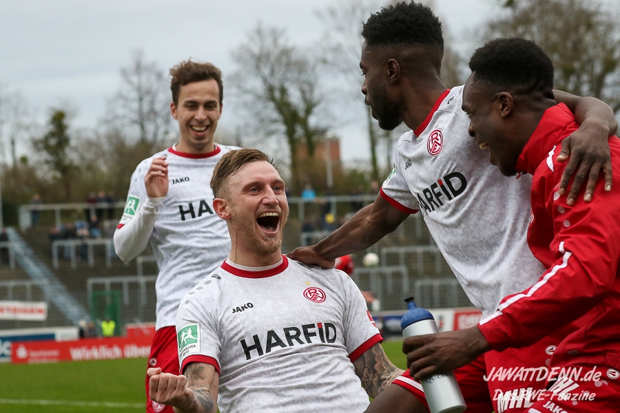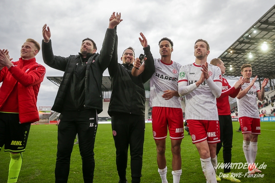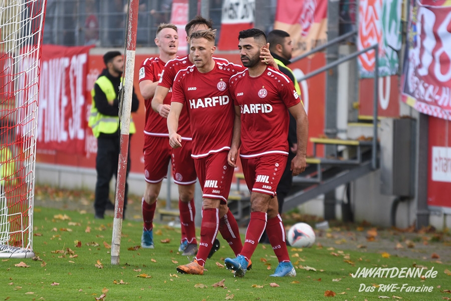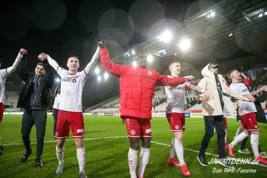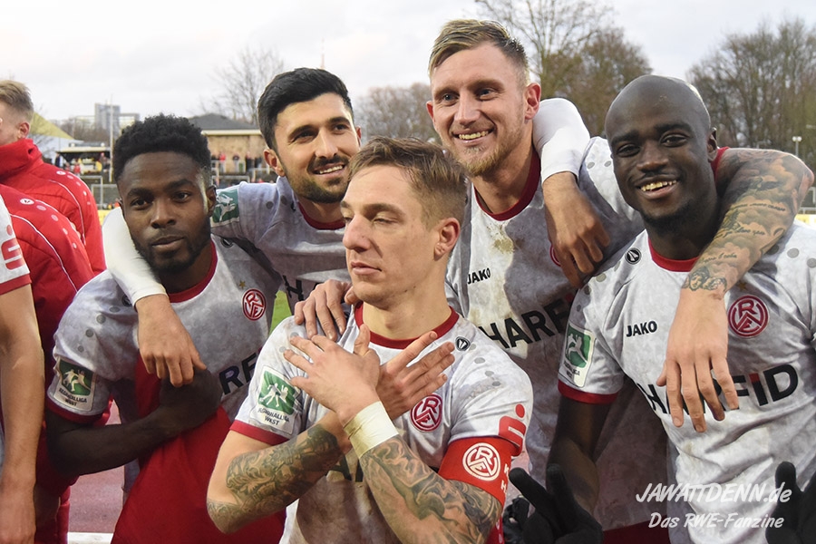 Wenn du in der 75. Minute ein reguläres Tor abgepfiffen bekommst und weiter Gas gibst, dann ist ein Treffer in der 89. Minute mehr als verdient. Alex Hahn versetzte mit seinem Treffer in der Schlussminute die RWE-Fans in Extase. Und Hedon Selishta hatte nach Abpfiff noch seine Interpretation einer Humba zu bieten. Danke Jungs, für diesen schönen Nachmittag.