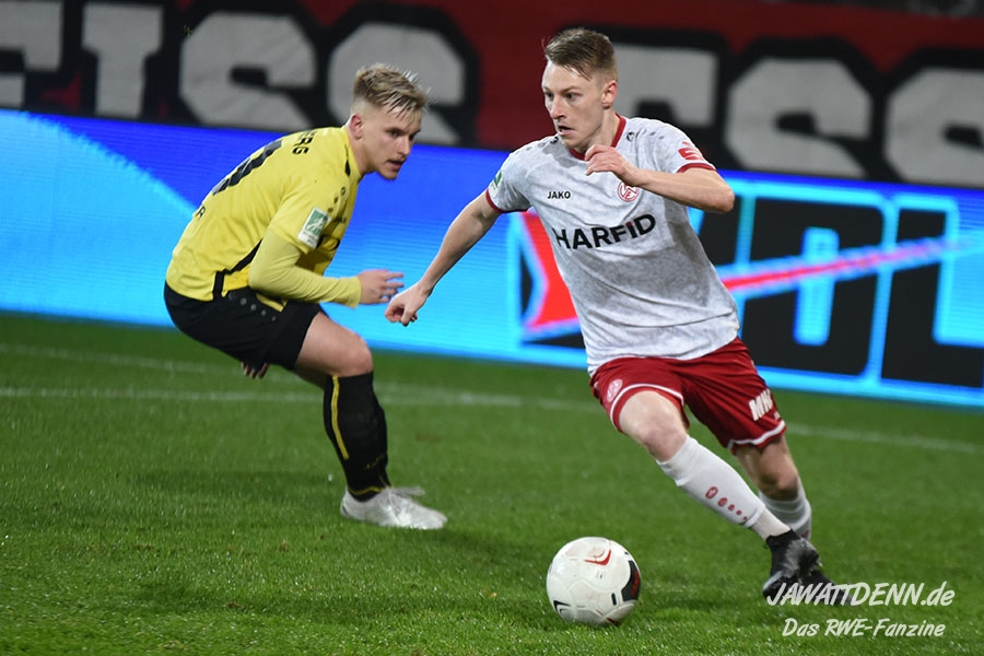 RWE bleibt in Schlagdistanz zur Tabellenspitze und ist weiter im Meisterschaftsrennen dabei. Die Essener waren gegen harmlose Oberhausener das bessere Team und konnten durch das Tor des Tages von Oguzhan Kefkir die drei Punkte an der Hafenstraße behalten. Niemals aufgeben!
