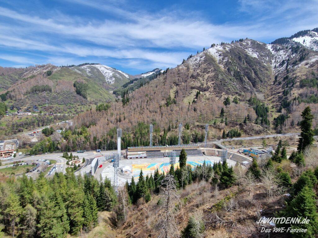 In weiser Voraussicht, dass RWE – der Vorvorletzte der Hinrunde – als Rückrundenzweiter noch einen entspannten Ausklang der Saison 24/25 haben würde, schossen wir – ein als Wumme bekannter Hafensänger und meine Wenigkeit – für das Osterwochenende zwei absolute Schnäppchenflüge nach Zentralasien. Während die Flugpreise in der gesamten Vorplanung stets zwischen 550 und 700 € lagen, zeigte Skyscanner Anfang Februar plötzlich einen Preis von 260 € an, um mit einem Umstieg in Ankara von Köln nach Almaty zu kommen. Die türkische Billigairline AJet war zwar bis dahin noch gänzlich unbekannt, was aber in Deutschland starten und landen dürfte, konnte ja nicht so verkehrt sein.