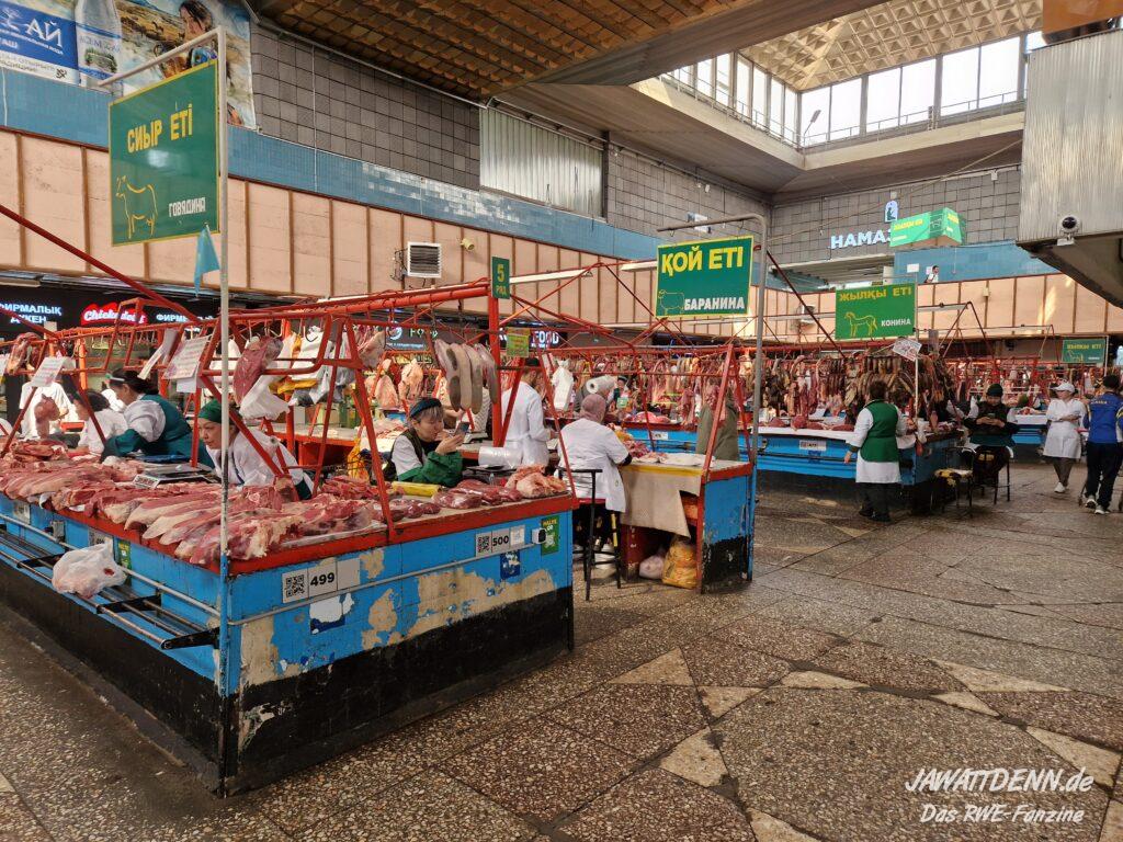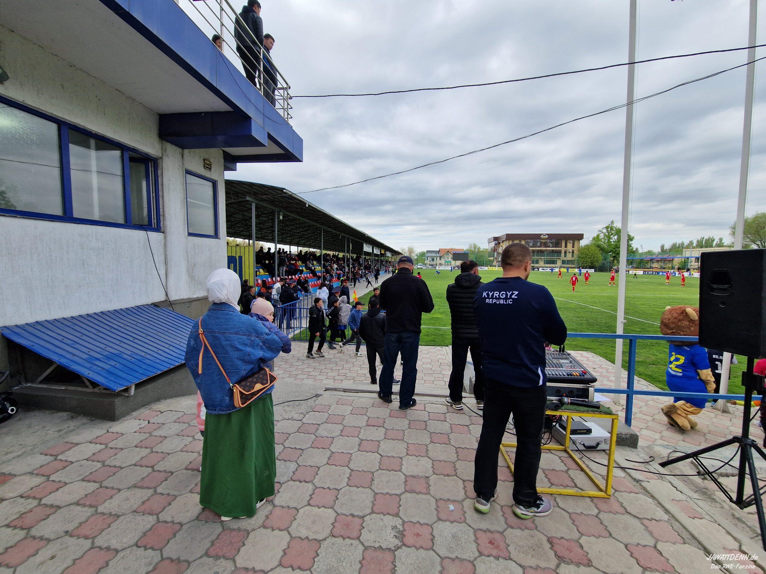 Ziel unseres Fußmarsches war das 3.000 Zuschauer fassende Dordoi-Stadion des 1997 gegründeten Rekordmeisters FC Dordoi Bishkek. Der Eintritt war frei, so dass die gesparten Som (1 € = 100 KGS) direkt in ein Trikot für 11 € investierte werden konnten. Für einen kleinen Burger und ein Getränk wurde insgesamt 1 € fällig.