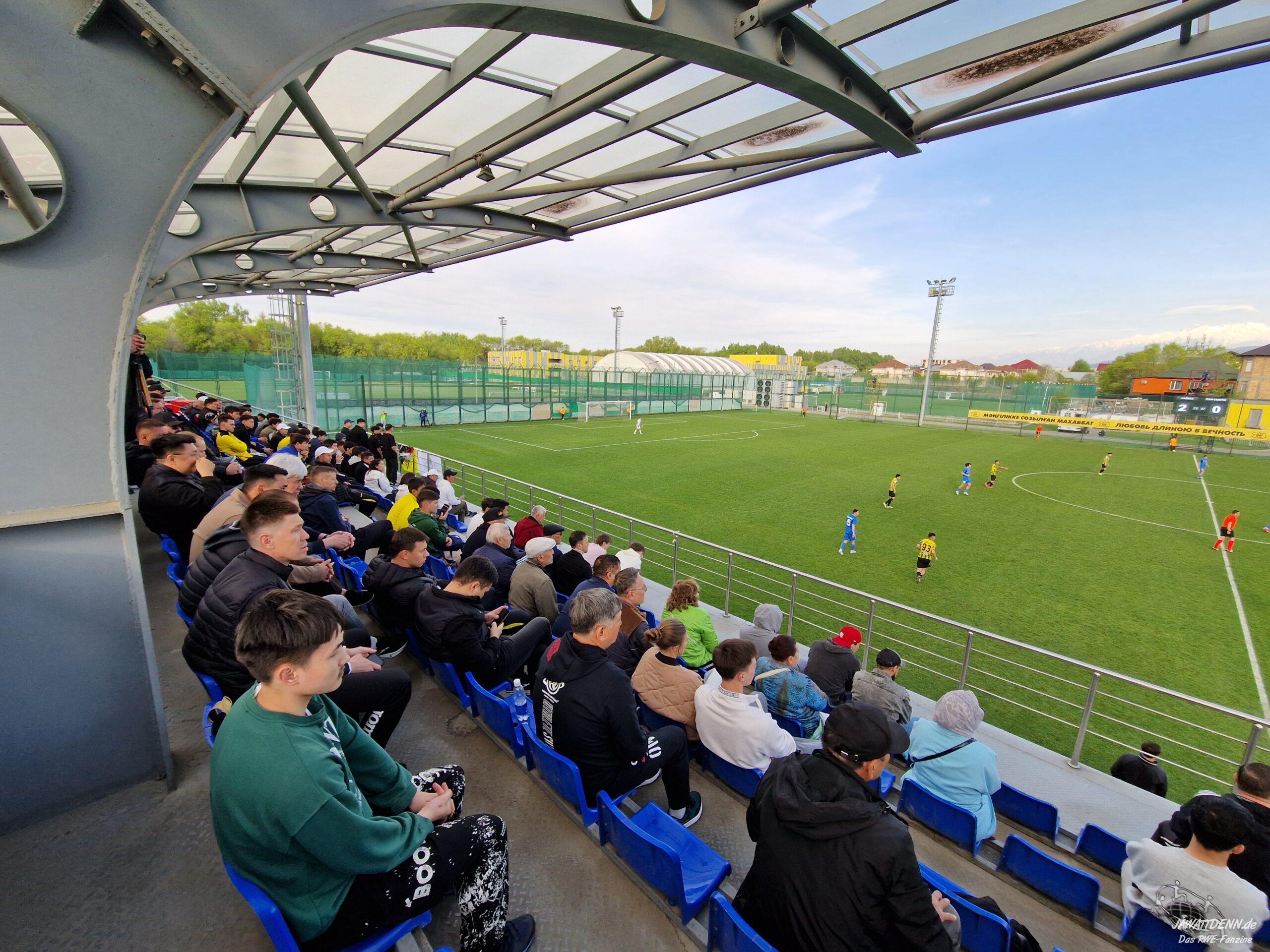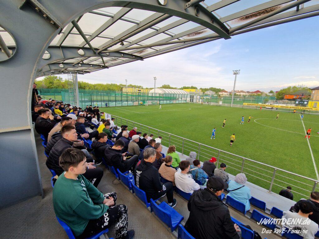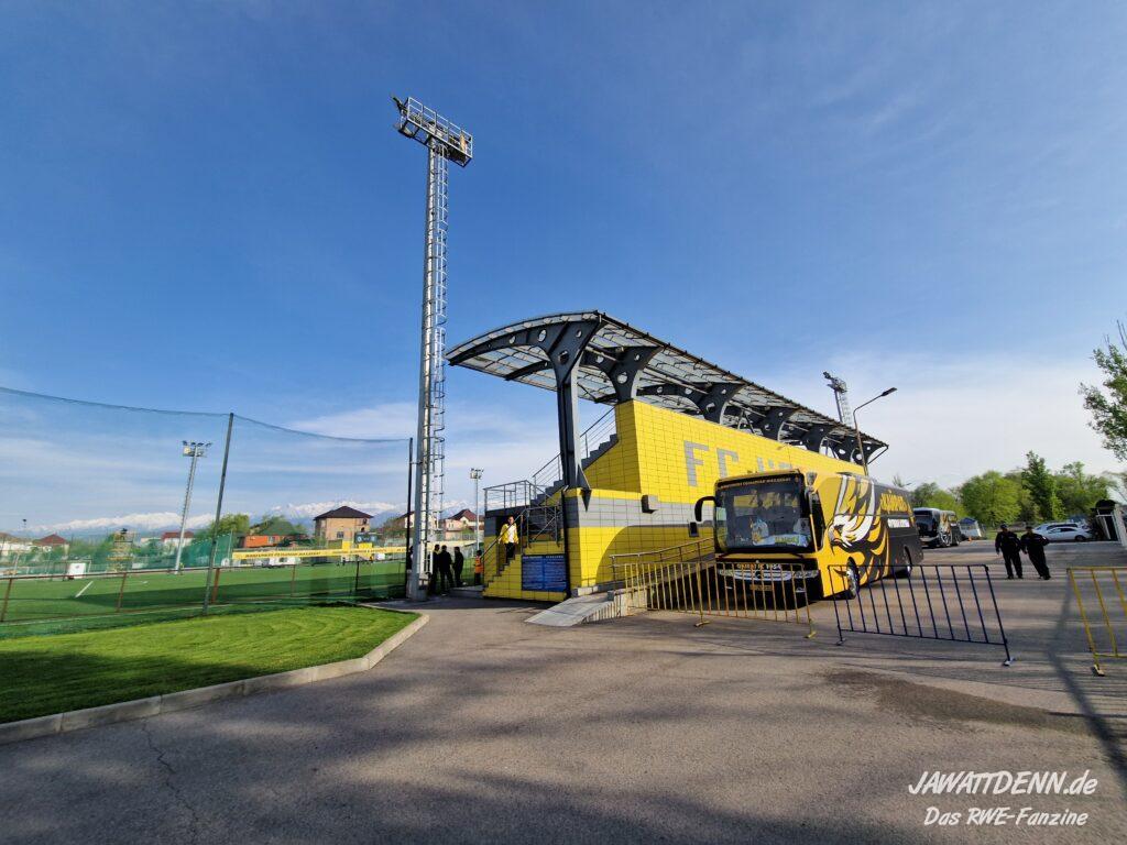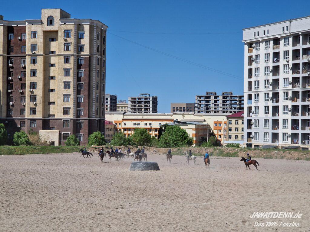 Für 16 Uhr stand das Spiel des Tages auf dem Plan. Das Zugpferd der Stadt, Kairat Almaty, hatte leider schon am Vorabend gespielt. Zu diesem Zeitpunkt wussten wir noch nicht, dass der Verein sich wenige Monate später gegen Celtic Glasgow durchsetzen und erstmals für die Champions League qualifizieren würde. So durfte sich unter anderem Real Madrid auf eine Anreise von 6.412 Kilometern freuen. Wir hingegen mussten uns mit der Nachwuchsabteilung des amtierenden Meisters zufriedengeben, die immerhin in der 2. Liga spielt.