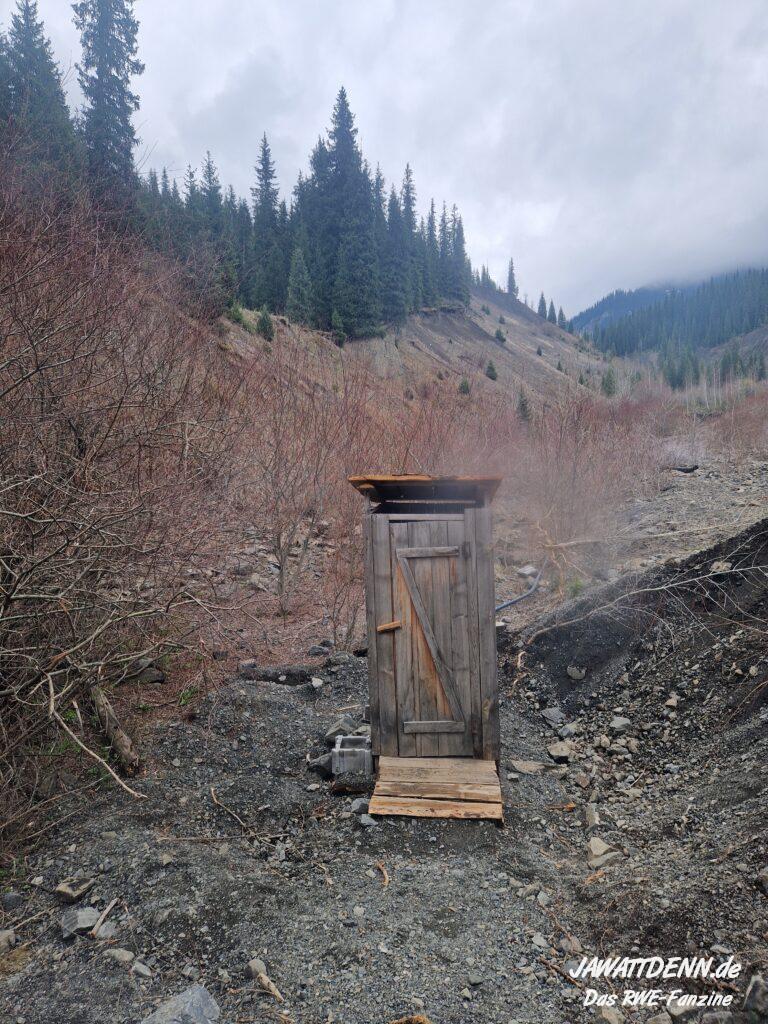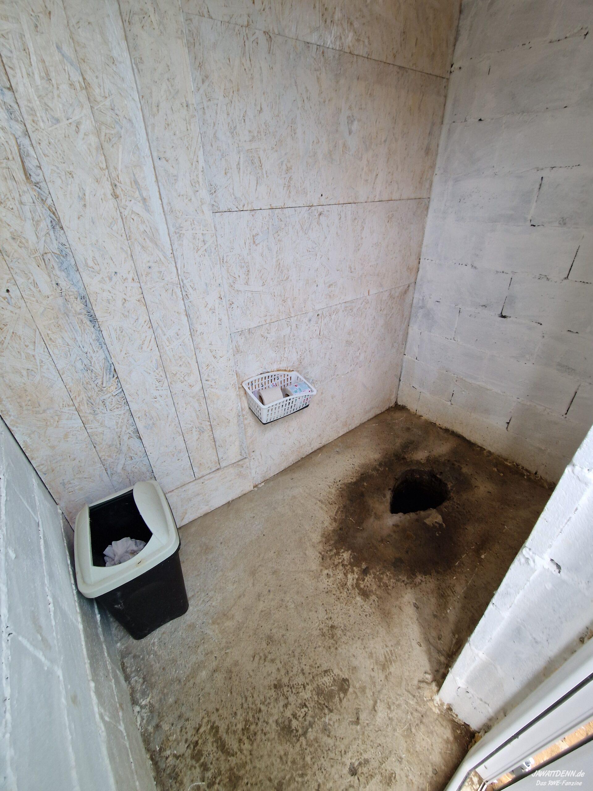Offen blieb auch die exklusive Toilette neben der Jurte, die ohne Schloss auskam. Und allem anderen, was man sich in einer Toilette wünscht. Der Innenarchitekt des kleinen Gemäuers hatte sich auf ein kleines Loch im Steinboden beschränkt.