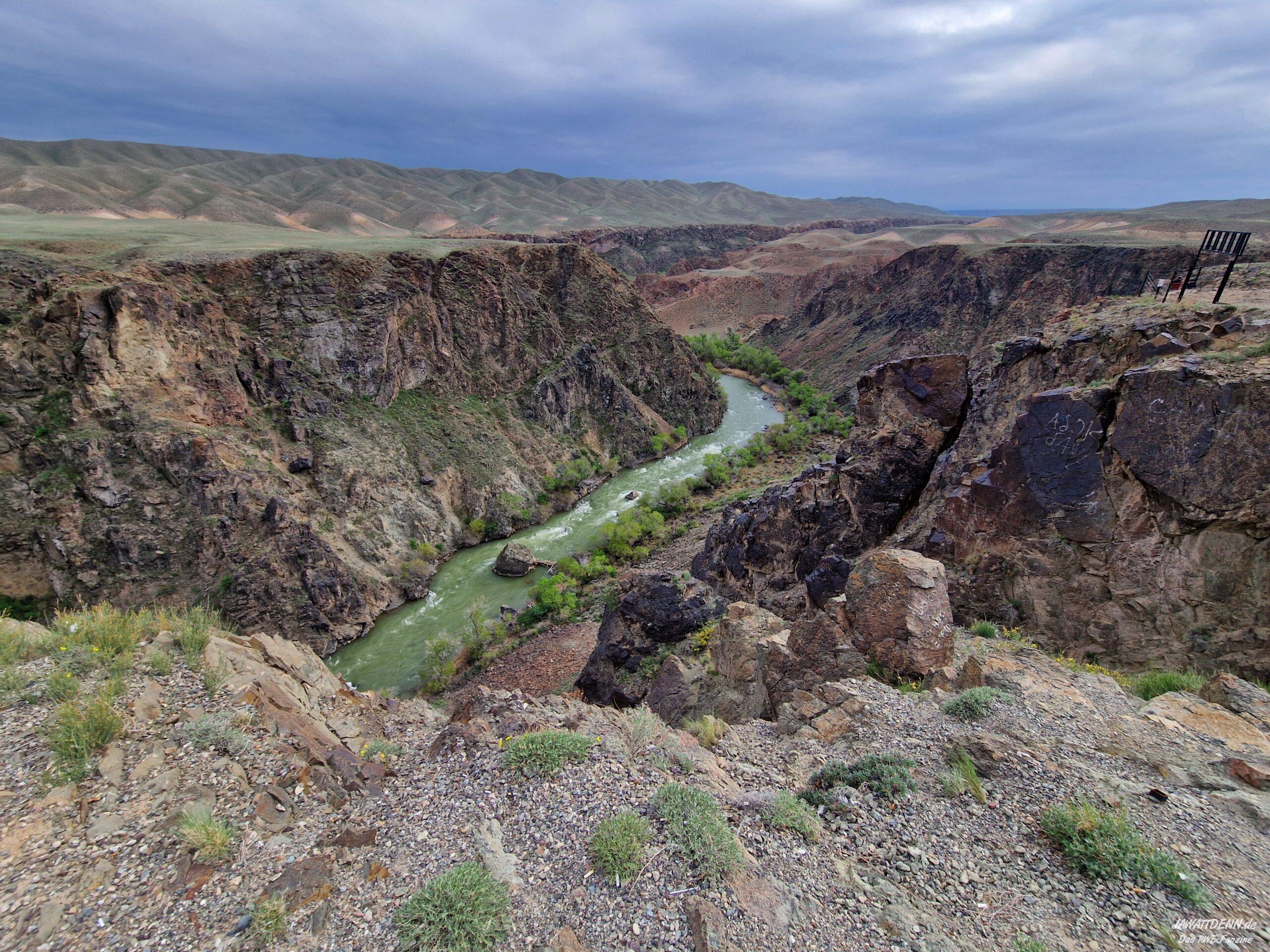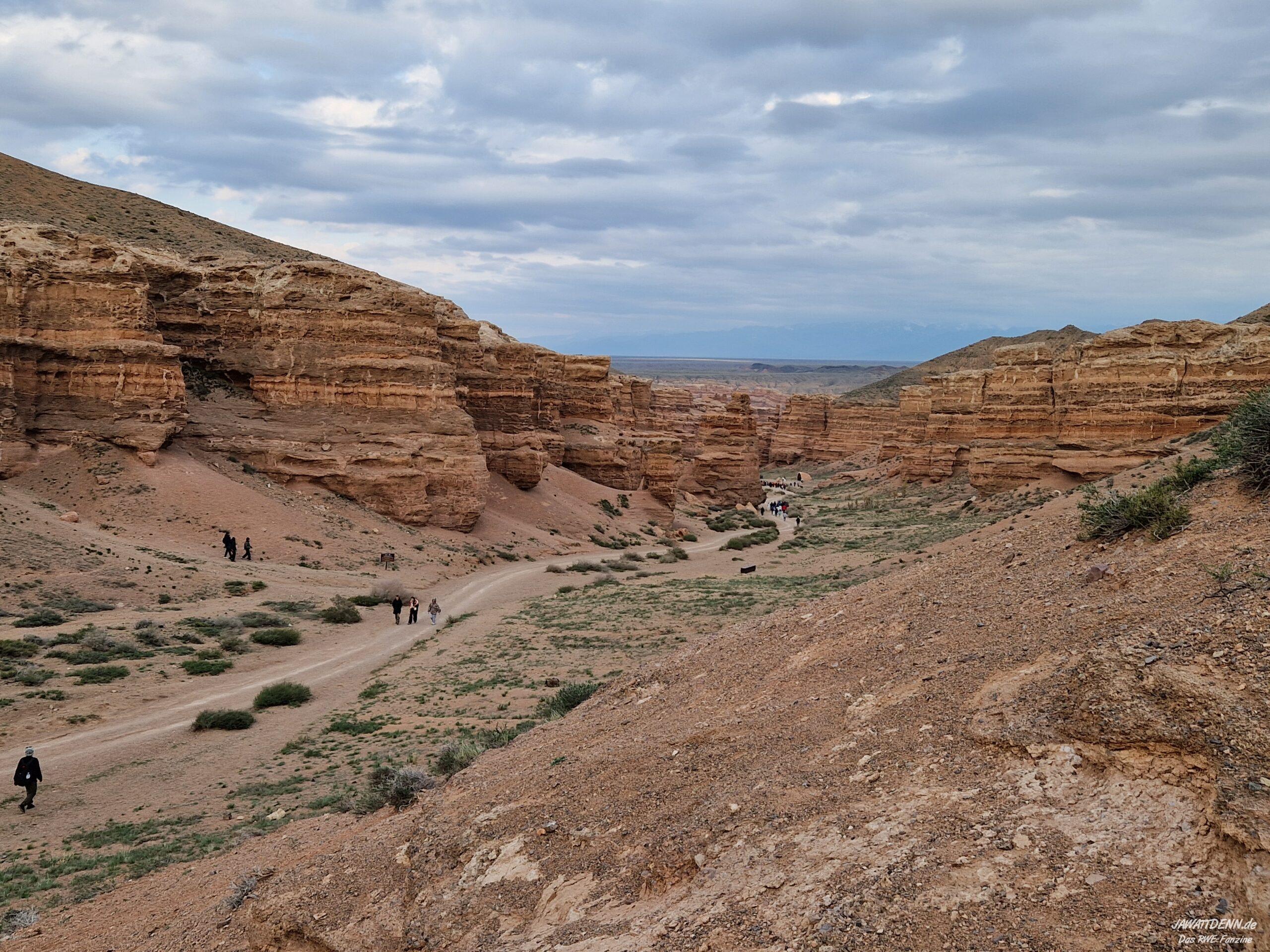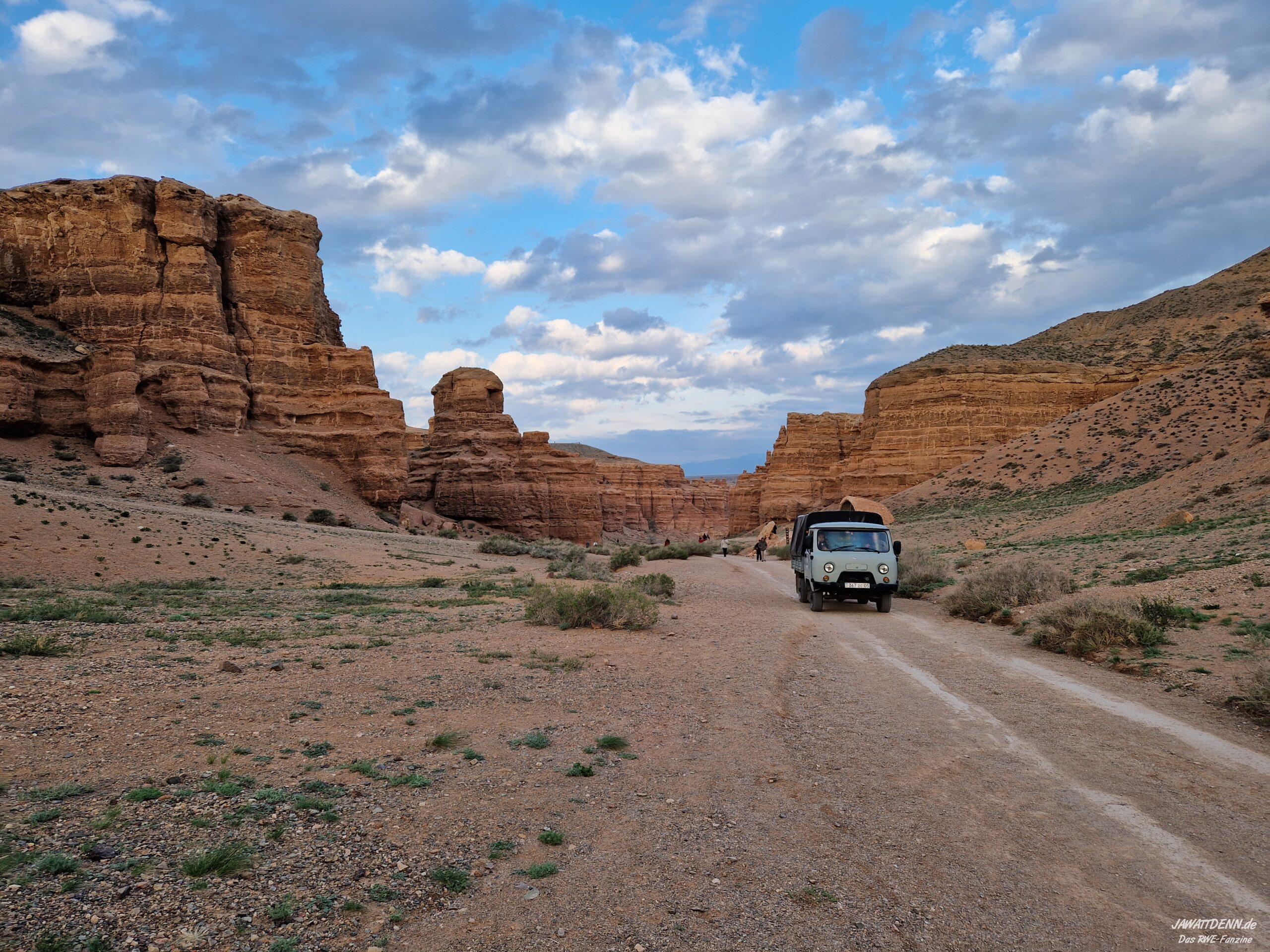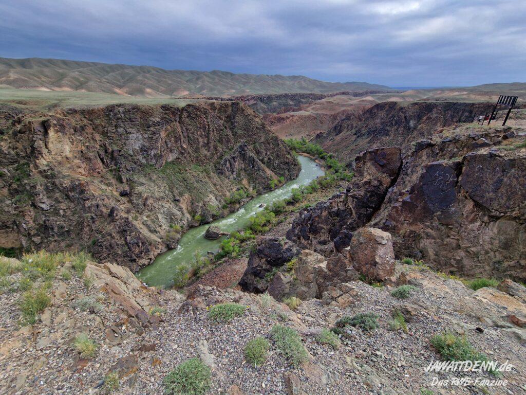 Am Besucherzentrum angekommen, riss am Nachmittag nochmal der Himmel auf. Kurz vorm Sonnenuntergang, der hier – 80 km von der chinesischen Grenze entfernt – bereits um 18 Uhr stattfindet. Seitdem das neuntgrößte Land der Welt, dessen Fläche sich geografisch gesehen über vier Zeitzonen erstreckt, zu März 2024 auf eine Zeitzone umgestellt hat, wird es im Osten des Landes besonders schnell dunkel. Bis dahin hatten wir unsere Meter durch den Canyon und unzählige Fotos von den orange-rot leuchtenden Felsformationen allerdings schon gemacht.