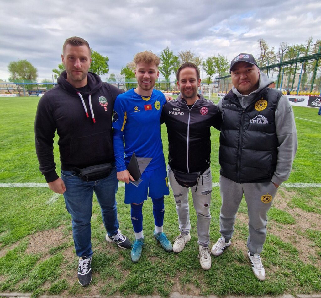 Kimi Merk, heutiger Doppeltorschütze und offiziell zum Spieler des Spiels gekürt, ist Nationalspieler in Kirgisistan, wo sein Vater herstammt. Geboren in Primasens und ausgebildet beim 1. FC Kaiserslautern, zog es ihn 2023 mit 19 Jahren zu Pakhtakor Tashkent nach Usebekistan und mit dieser Saison zu FC Dordoi Bishkek.