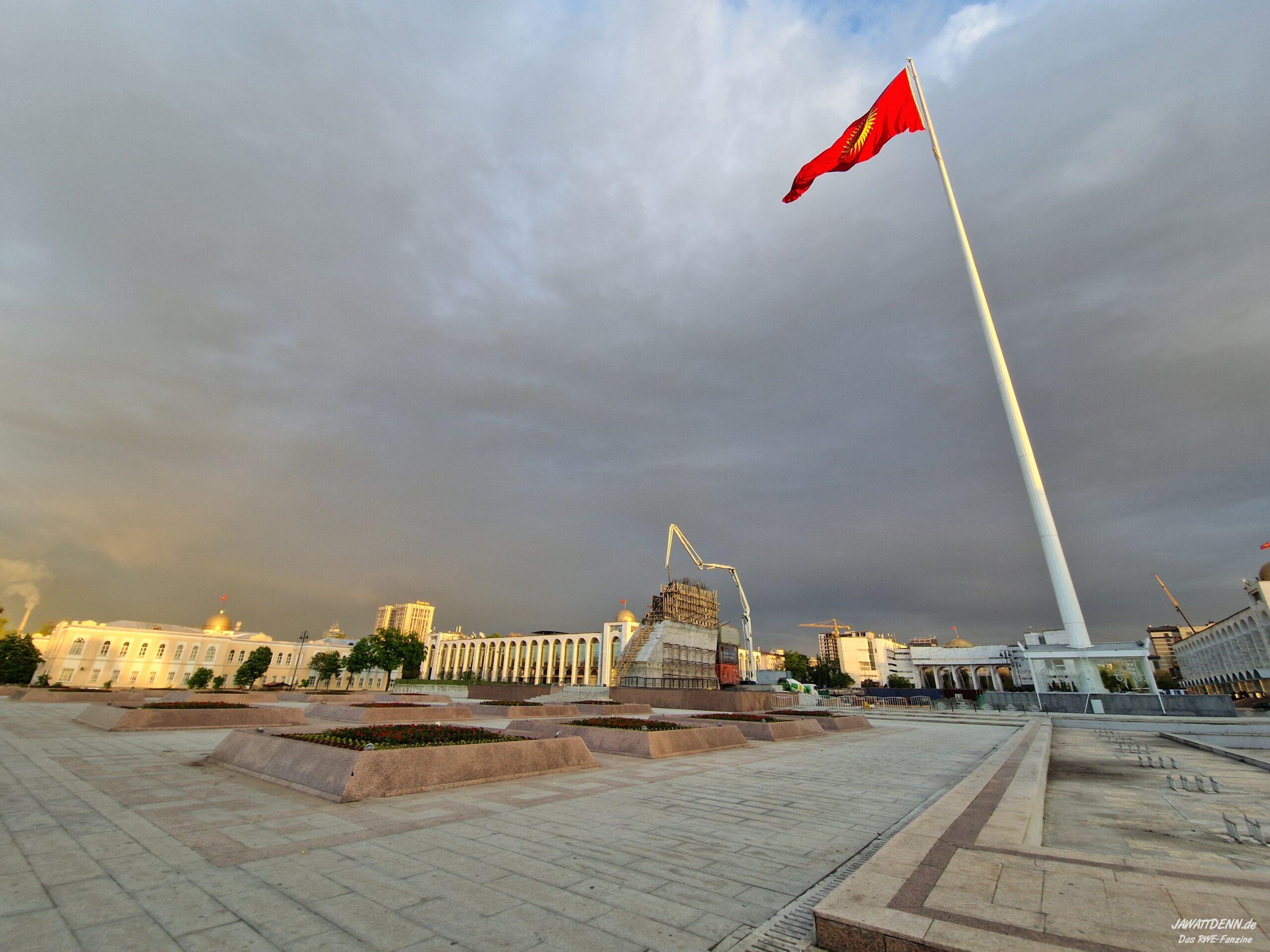 Der Grenzübergang zwischen den beiden Brüdervölkern, die eine gute Nachbarschaft pflegen, verlief reibungslos. Der erste Fuß auf kirgisischem Boden war das Startsignal für eine Horde Kinder, bei uns SIM-Karten an den Mann zu bringen. Wir waren jedoch schon mit einer über die App Yesim bezogenen eSIM versorgt, die es uns erlaubte, auch die Taxifahrerzunft mit einem mehrfachen „Njet!“ zu passieren und in aller Ruhe ein Uber zu ordern. Für 5 € ging es dann nochmal 45 Minuten bis in die Hauptstadt.