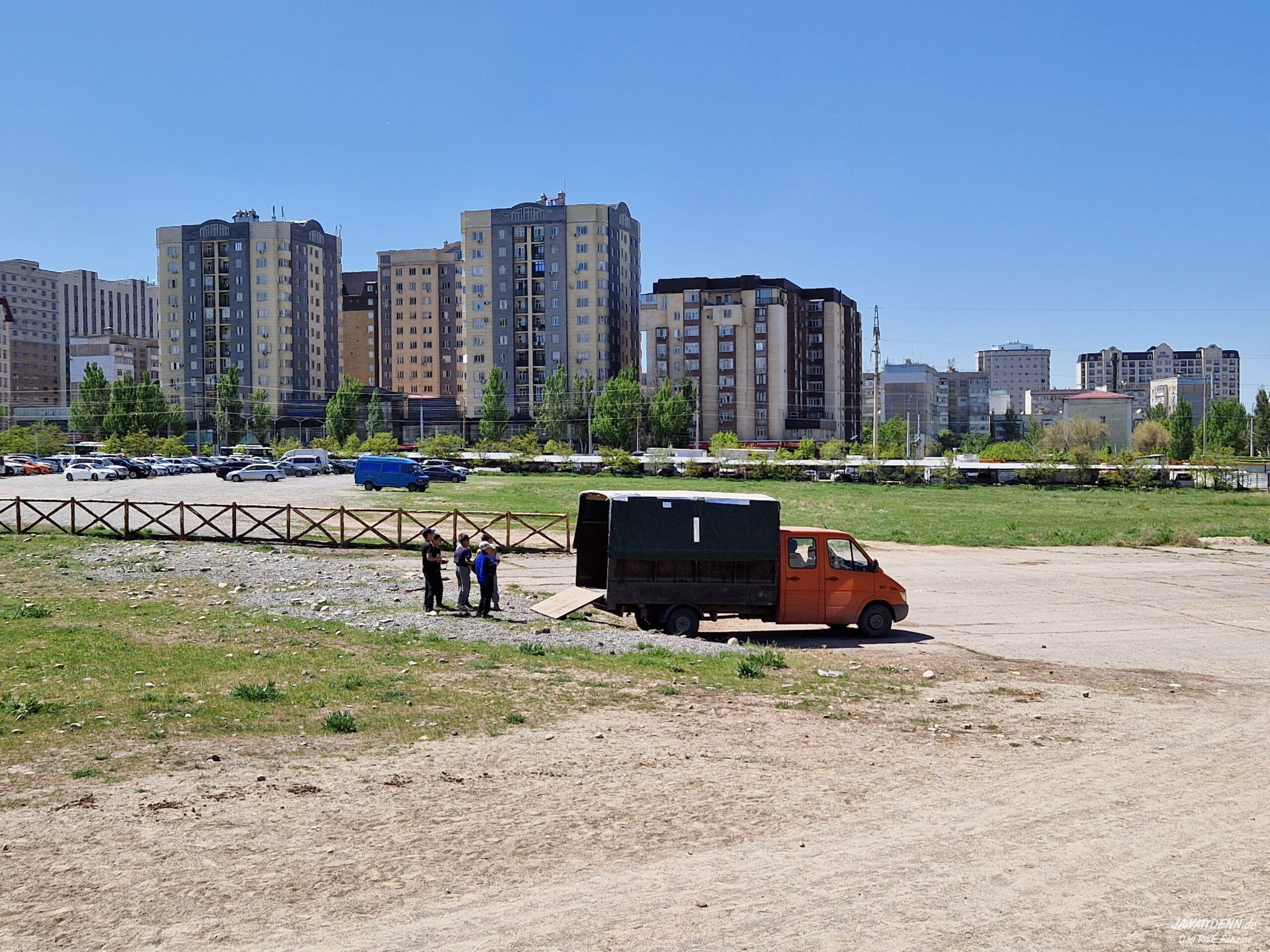 Nach herzlicher Verabschiedung riefen wir ein Taxi zum Westbahnhof. Dass dieser bereits im Oktober 2024 seinen Betrieb eingestellt hat, fiel unserem Fahrer natürlich erst zwei Minuten vor Ankunft ein. So ging es nochmal weiter zum zentralen Busbahnhof Avtovaksal, von wo uns ein Bus letztlich für 6 Euro in 4-5 Stunden nach Almaty bringen sollte. Zuvor stand nach dem langen Tag am Hippodrom noch eine Stärkung an. Bei Dönerpreisen, wie vor 15 Jahren noch auf der Altendorfer Straße, durften es gleich zwei Bahnhof-Kebabs pro Nase sein.