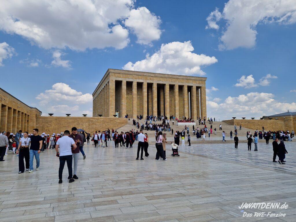 Es folgte der erste Zwischenstopp in Ankara. Sechs Stunden blieben, sich ein Bild von der türkischen Hauptstadt zu machen. Mit der Kocatepe-Moschee, größter Sakralbau der Stadt, und dem Anıtkabir, dem Atatürk-Mausoleum, klapperten wir die wichtigsten Sehenswürdigkeiten ab. Ansonsten machte die Stadt einen recht unspektakulären Eindruck, so dass wir schnell einen Haken hinter dem Sightseeing machen konnten. Der in einem trostlosen Imbiss verzehrte Adana-Teller blieb ebenso recht blass.