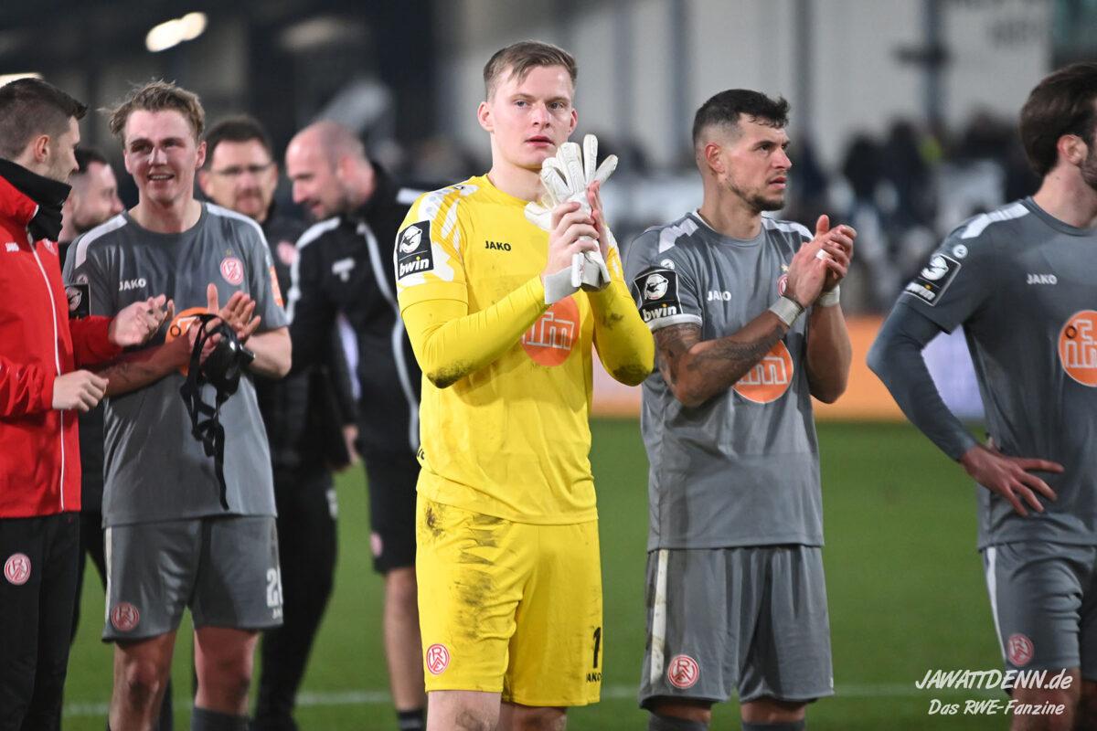 Die vielleicht beste Nachricht folgt direkt zu Beginn. Nach dem überraschenden Transfer von Kapitän Vinko Sapina nach Dresden bestand bei den Fans die große Sorge, dass der Verein sein komplettes Tafelsilber jetzt vergolden wolle. Denn Stammkeeper Jakob Golz (25) ist nur noch ein Jahr gebunden und bleiben seine Leistungen so stabil wie in der letzten Saison, wird er Essen mit sehr hoher Wahrscheinlichkeit verlassen. Gerüchteweise führte schon jetzt eine Spur in die holländische Eredivisie zum FC Groningen, RWE streckte deshalb angeblich schon die Fühler zum Verler Luca Unbehaun aus. Doch dann sprach Marcus Steegmann ein „Machtwort“, Golz bleibt dem Verein erhalten und alle Gedankenspiele um den Schlussmann wurden vorerst in die Mottenkiste gepackt.