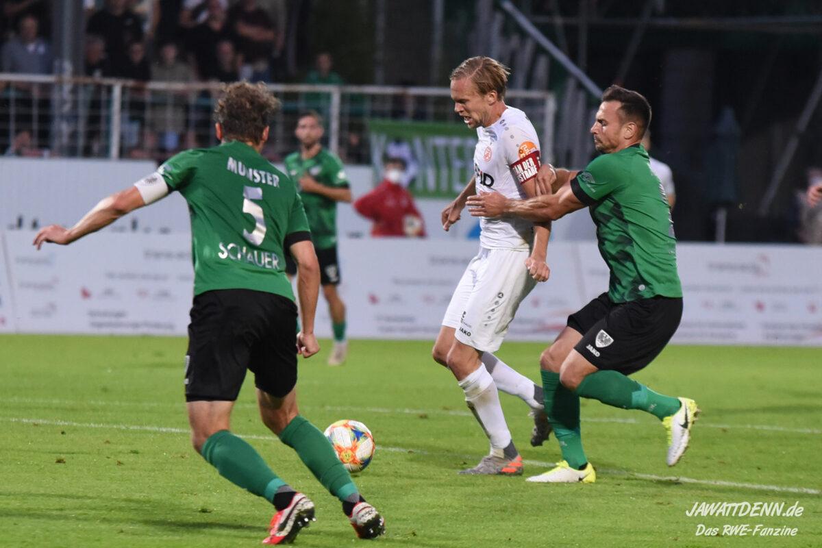 Vielleicht sollten wir jedoch auch Verständnis für den Menschen Dennis Grote haben, der nur an die Zukunft seiner Familie gedacht hat? Immerhin lässt er uns teilhaben, dass er natürlich wisse, „welche Ziele [er] mit RWE verfolge. Aber den Zeitpunkt solcher Angebote kann man sich im Leben auch nicht aussuchen!“ – richtig, denn das Angebot von Preußen Münster, einem 35-jährigen Regionalliga-Spieler einen Vertrag über anderthalb Jahre als Spieler mit anschließendem Zweijahresvertrag auf Funktionärsebene anzubieten basiert einzig und allein darauf, dass es sich um den Kapitän der direkten Konkurrenz handelt. Wäre RWE Tabellenfünfter oder Grote Spieler von Alemannia Aachen, hätte es ein derartiges Angebot nie gegeben und ginge es Münster ligenunabhängig um Grotes Qualitäten als Spieler und Funktionär, wäre eine langfristige Verpflichtung Grotes bereits zu dieser Saison möglich gewesen, schließlich verlängerte er erst Anfang 2021 für ein weiteres Jahr an der Hafenstraße.