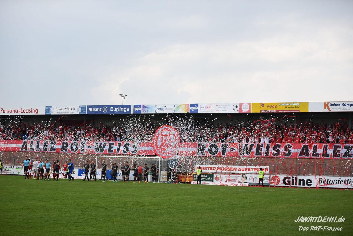 Der Götterbote verkündete den Lizenzentzug, Rot-Weiss Essen war insolvent, der Vorstand flüchtete über einen Hinterausgang zu bereitstehenden Taxis und für RWE gab es nun zwei Optionen: Im besten Fall ein Abstieg in die Oberliga, im schlimmsten Fall die Löschung aus dem Vereinsregister mit Neustart in der Kreisliga. Verständlicherweise hielt sich der Optimismus auf ein Best-Case-Szenario nach den Vorjahren bei der Anhängerschaft in Grenzen und das große Zittern begann – so oder so war nun endgültig der Tiefpunkt der Vereinsgeschichte erreicht…