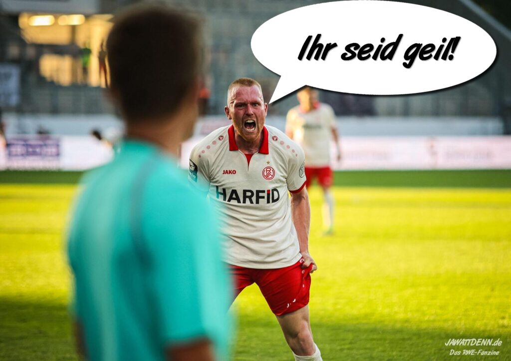 Zunächst zeigte RWE trotz des Gegentors vor der Halbzeitpause ein starkes Spiel mit einem zwischenzeitlichen 1:1. Nach einer Stunde stellte Christoph Dabrowski um und Wiesbaden schlug mit einem Doppelschlag erbarmungslos zu. Die Spielanalyse lest ihr in unserem Spielbericht.