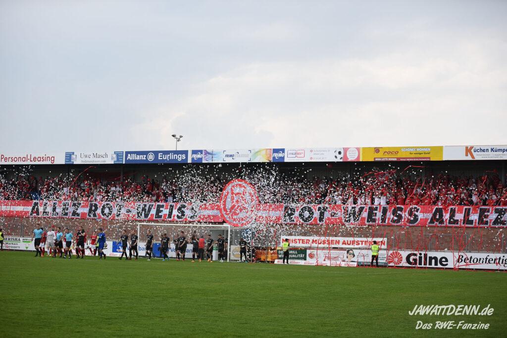 Nachdem sich Hoch 3 nicht als der Heilsbringer erwiesen hatte, verfolgte RWE ab 2019 die Devise, alle guten Dinge sind Drei. In einer bewegten und lange Zeit von Corona geprägten Zeit, besiegte RWE am Ende auch den Virus der Unaufsteigbarkeit, den die Konkurrenz uns stets wünschte. Nach drei Jahren, die endlich von Spitzenfußball geprägt waren, haben wir uns am Ende den Aufstieg geholt.