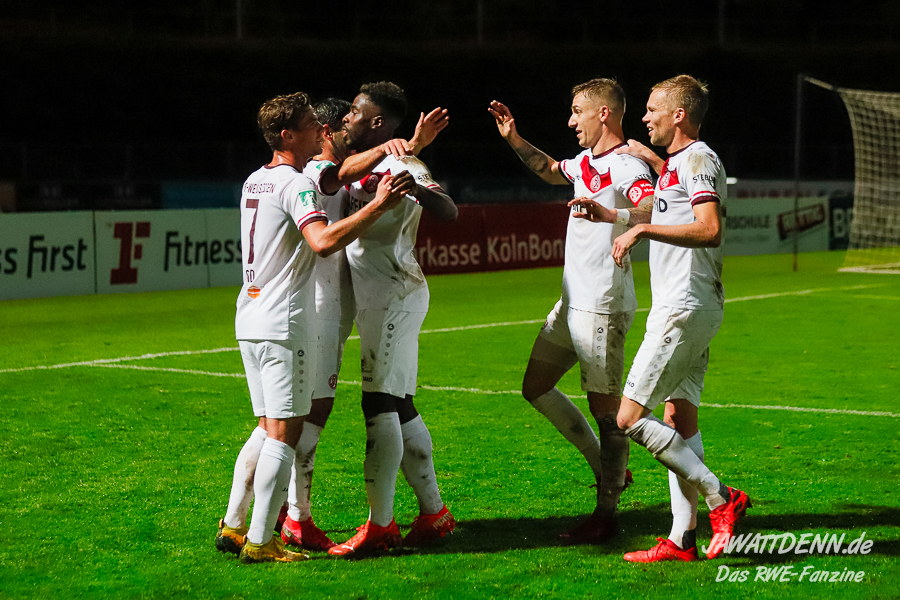 Im dritten Meisterschaftsspiel fuhren die Rot-Weissen endlich einen Sieg und drei Punkte ein. Zweimal ging RWE nach gravierenden Abwehrspatzern in Rückstand, doch durch die drei Tore von Marcel Platzek, Marco Gehl-Gomez und einem 25-Meter-Hammer in den Winkel von Amara Condé blieben die Punkte an der Hafenstraße. Am Samstag geht es schon mit dem Auswärtsspiel in Lippstadt weiter. Gerne auch wieder mit einem Sieg.