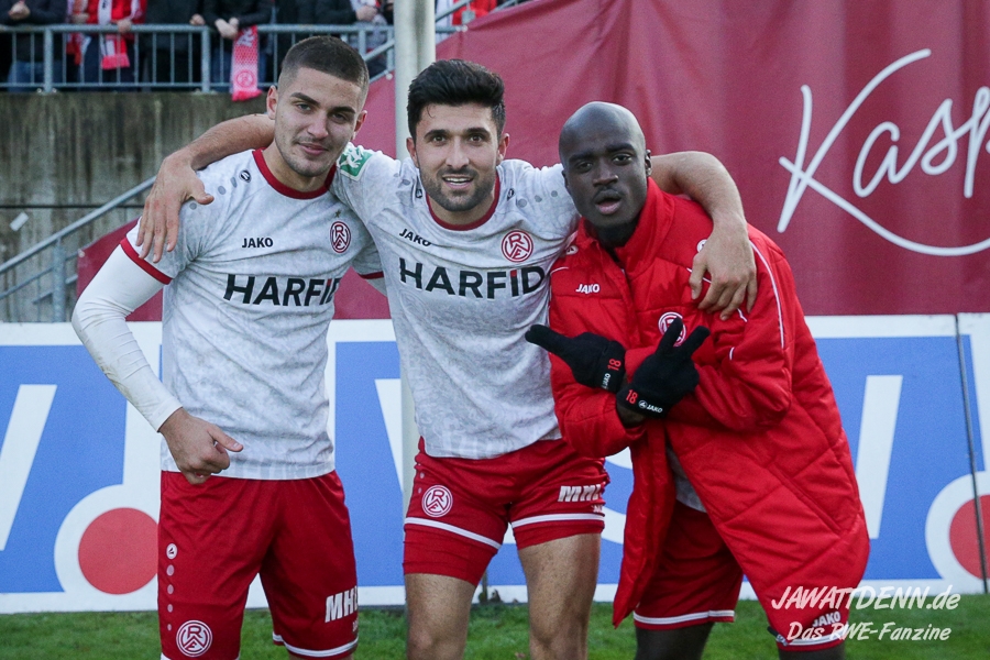 Wenn du in der 75. Minute ein reguläres Tor abgepfiffen bekommst und weiter Gas gibst, dann ist ein Treffer in der 89. Minute mehr als verdient. Alex Hahn versetzte mit seinem Treffer in der Schlussminute die RWE-Fans in Extase. Und Hedon Selishta hatte nach Abpfiff noch seine Interpretation einer Humba zu bieten. Danke Jungs, für diesen schönen Nachmittag.