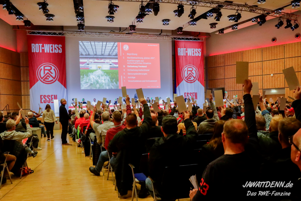 Das höchste Gremium des Vereins Rot-Weiss Essen ist die Mitgliederversammlung und über diese Versammlung ist zu reden. Im ersten Teil ordnen wir die Auftritte der beiden Vorstände Alexander Rang und Marc-Nicolai Pfeifer ein.