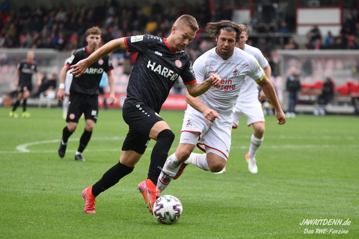 Das eklatanteste Problem war heute allerdings, dass RWE in Offensivphasen zu weit vorne stand. Das Gegentor entstand dadurch, dass ein Großteil der Mannschaft aufgerückt war und gleich drei Spieler nahezu unbehelligt auf Daniel Davari zulaufen konnten. Die Essener lagen da lange in Führung und hatten es gar nicht nötig die kompakte Grundordnung aufzugeben. Selbst nach dem Ausgleich passierte es Rot-Weiss einige Male, sodass sogar eine Niederlage möglich gewesen wäre, wenn Köln seine Angriffe noch konsequenter zu Ende gespielt hätte.