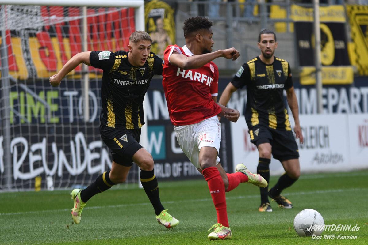 RWE legte bei der abstiegsbedrohten Alemannia los wie die Feuerwehr und musste sich am Ende doch in mehreren Situationen bei Jakob Golz bedanken, dass es angesichts der erneut schwachen Chancenverwertung und einer passiven zweiten Hälfte nicht sogar mit null Punkten im Gepäck nach Hause ging.