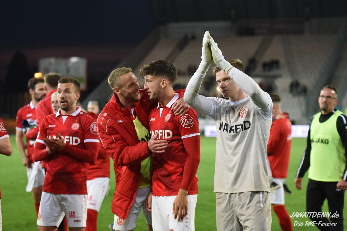 Während ein 3:1 auf dem Papier recht souverän wirkt, konnte man im ganzen Stadion förmlich die Steine hören, die beim Abpfiff von über 11.000 Herzen fielen. Was zur Halbzeit so wirkte, als würde Rot-Weiss etwas für das Torverhältnis tun, entwickelte sich zu einem regelrechten Krimi, der mit der gelb-roten Karte gegen Meik Kühnel und dem 22. Treffer von Simon Engelmann dann klar Richtung Happy End ging.