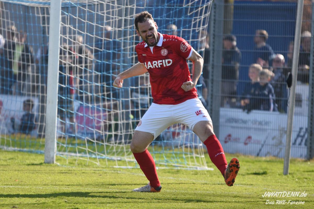 Torhüter Marcel Hölscher wiederum, eine seit 11 Jahren für den SCW kickende Vereinsikone, hielt an der Hafenstraße 97 A überragend, wie meistens gegen RWE. Dass Hölscher, der für einen Torhüter ungewöhnliche kleine 180 Zentimeter misst, auch mal anders kann, zeigte er im Dezember des Vorjahres, als ihm gegen Fortuna Düsseldorfs U23 ein Eigentor gelang, das Arnd Zeiglers wunderbarer Welt des Fußballs das Kacktor des Monats wert war. Will heißen Marcel, auch gegen uns darfst du durchaus einmal patzen. 😉