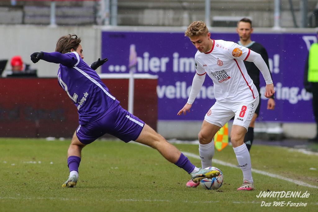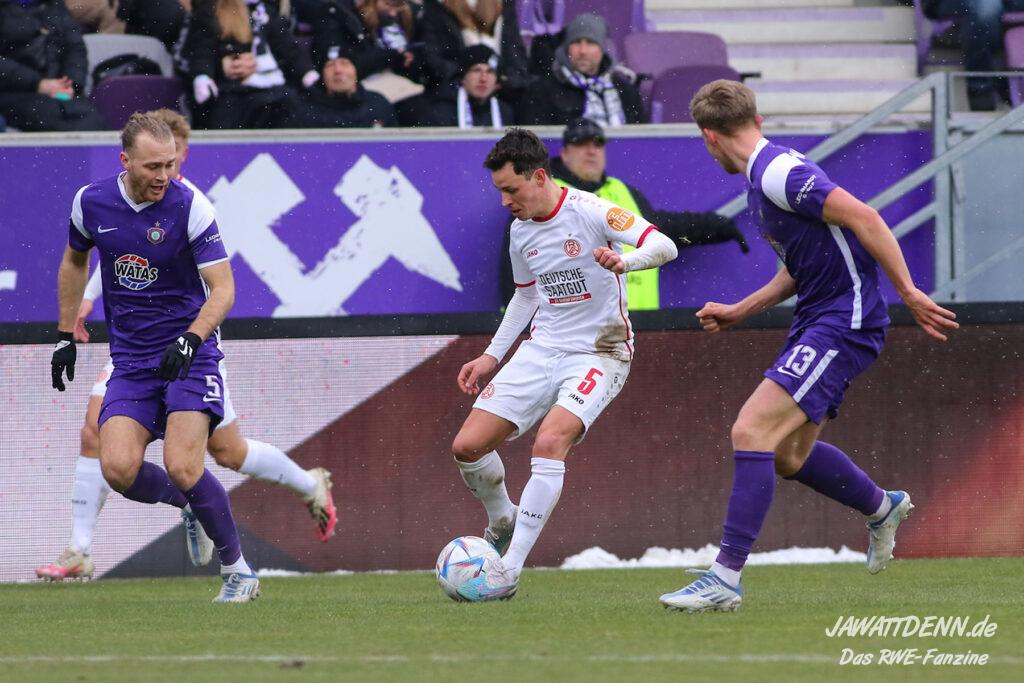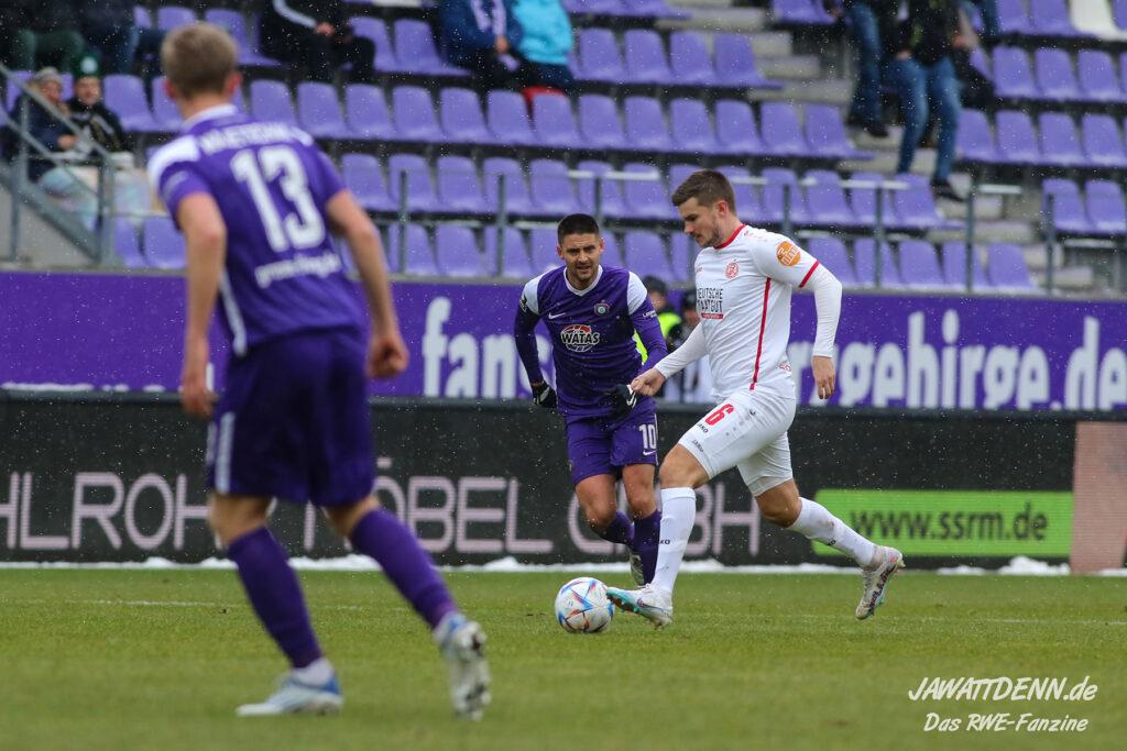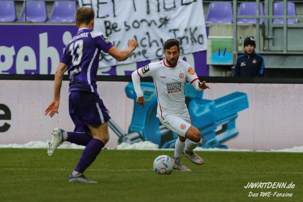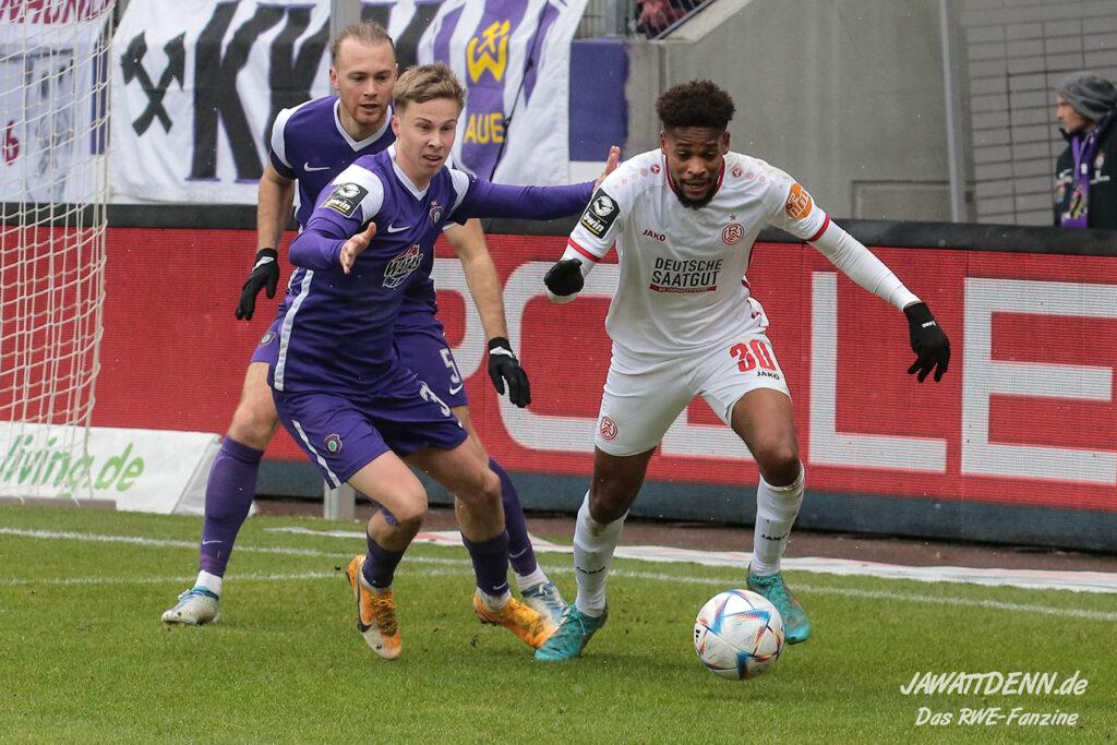 Aber auch ohne Jonjic steht sehr viel Qualität und Erfahrung in der Auer Offensive. Allen voran Dimitrij Nazarov geht mit den Erzgebirglern seit beinahe sieben Jahren durch alle Höhen und Tiefen und ist auch mit 32 einer der Schlüsselspieler der Lila-Weißen. Aber auch die Außen Marvin Stefaniak und Omar Sijaric setzen in ihren Offensivläufen die gegnerische Abwehr unter Druck. RWE muss hier mannschaftlich geschlossen verteidigen, um im Erzgebirge-Stadion zu bestehen.