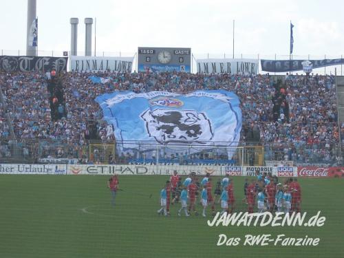 Fanfreundschaftspotenzial: 8 (hier herrscht Respekt zwischen zwei Traditionsklubs) – Die 60er sind kultig. Ebenso wie RWE die heimliche Nummer 1 im Pott ist, ist der TSV die Nummer 1 in München und bei den Ureinwohnern der Stadt beliebter als der mondäne andere Verein der Stadt. Als Bayerns Märchenkönig Ludwig II. das Zeitliche segnete, waren die 60er schon 26 Jahre alt und die Welt noch eine ohne den FC Bayern. Nachdem Fußball-Botschafter Sascha Mölders mit der Begründung, er sei ein Essener Jung, im Vorjahr nach dem 1:0 Pokalsieg der Löwen über einen Gelsenkirchener Stadtteilverein das Wappen der Gäste auf dem nach Schlusspfiff getauschten Trikot überklebte, flogen den Münchenern die Sympathien aus dem wahren Teil des Ruhrpotts förmlich zu. Noch mehr Fannähe verhindert da nur der Kulturschock beim Überschreiten des Weißwurstäquators. Bei den bisherigen Auftritten in München gab es aber sowohl vor als auch nach dem Spiel stets freundlich zu nennende Begegnungen mit den Einheimischen rund um Giesings Höhen.