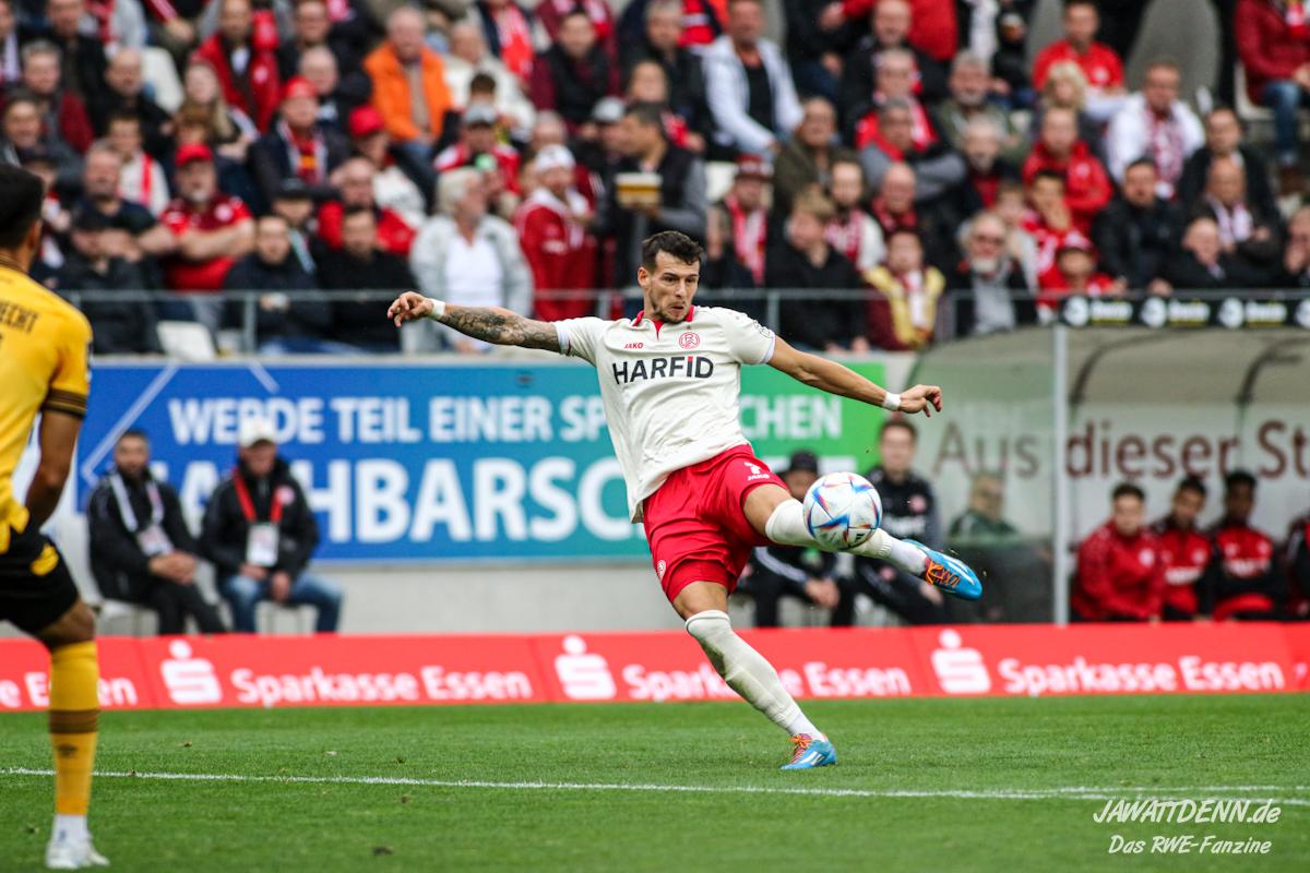 Auch wenn es spekulativ ist, wirkte es so, als hätte RWE zu Elft die Dresdner bezwingen können. Dass es immerhin noch ein Punkt geworden ist, ist das Ergebnis einer sehr starken Defensivarbeit. Eine 40-minütige Unterzahl gegen einen hochfavorisierten Gegner überstehen die wenigsten Mannschaften schadlos und RWE behielt hier immerhin den verdienten Punkt an der Hafenstraße.
