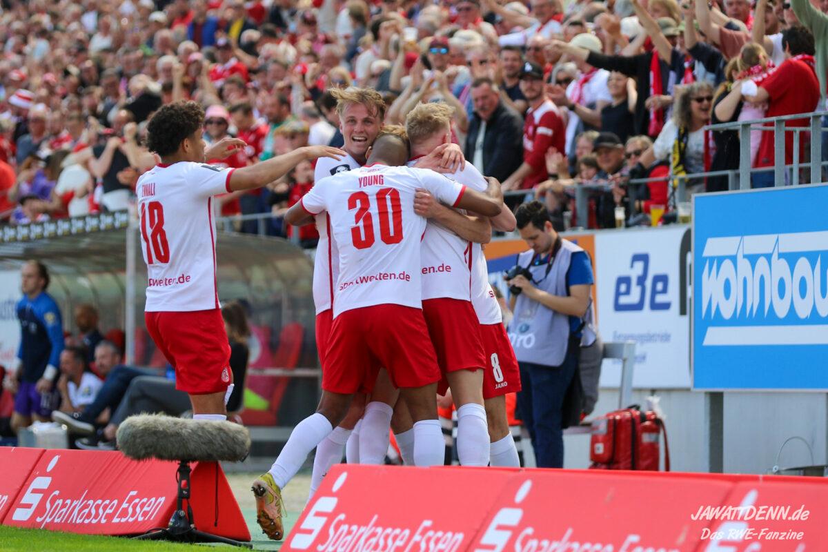 Nach einem späten Punktgewinn fühlen sich Unentschieden meistens als gefühlte Siege an. Aber neben der Dramatik des einzelnen Spiels, war der Punkt auch für die Tabelle Gold wert. Bayreuth und Zwickau hatten ohnehin nur noch theoretische Chancen darauf, RWE noch einzuholen und besiegelten ohnehin durch die jeweiligen Niederlagen gegen Viktoria Köln und Dynamo Dresden ihre Abstiege. Auch der SV Meppen kann nach dem achtbaren Unentschieden gegen den VfL Osnabrück RWE nicht mehr gefährlich werden, sodass das Augenmerk nun auf den Halleschen FC und den VfB Oldenburg liegt.