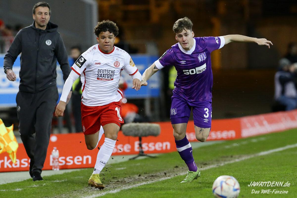 Auch der unbedingte Siegeswille und der Mut sind zu betonen. Nur Elversberg hat mit 4 Remis genauso wenige Punkteteilungen, ansonsten heißt es stets Sekt oder Selters. Das sind keine Gründe für RWE, in Ehrfurcht zu erstarren. Immerhin gelang es zwischendurch ausgerechnet Abstiegskandidat Bayreuth den Lila-Weißen in die Siegesseriensuppe zu spucken und siegte nach 0:2 Rückstand noch mit 3:2 an der Bremer Brücke. Und RWE brennt darauf, die erste Mannschaft seit dem 06.11.22 zu sein, die gegen den VfL Zuhause etwas Zählbares in der Hand behalten wird.