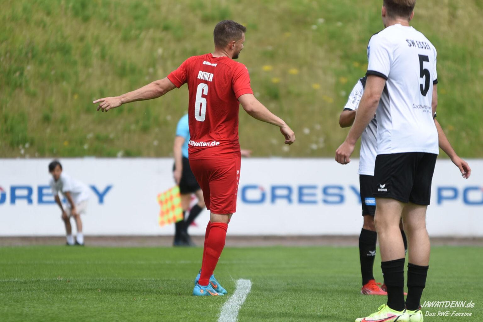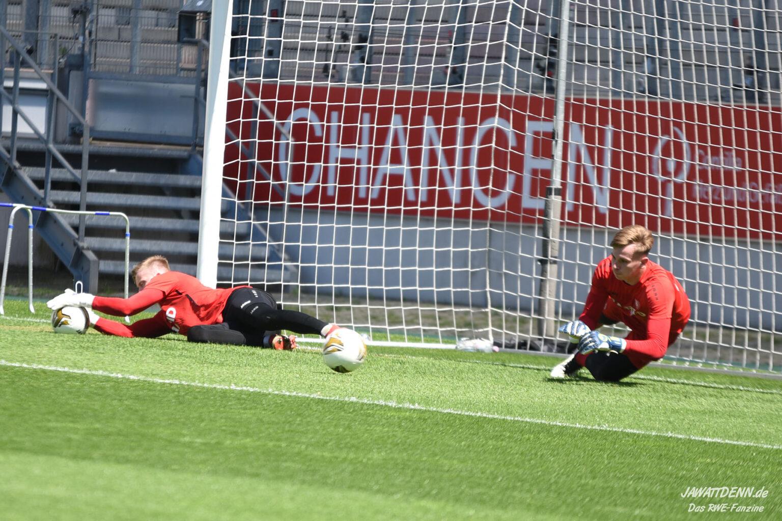Dass Dabro daran massiv gearbeitet hat, können Trainingskiebitze bestätigen. Überhaupt lebt der neue RWE-Trainer diese Werte vor und besticht mit enormen Fleiß und Hingabe. Das höhere Tempo und den größeren Mut im Essener Spiel sah man bereits im Test gegen Bundesligist Borussia Mönchengladbach, als man ein aktives und hohes Pressing spielendes RWE erlebte, das freilich hinten verwundbar war und 2:4 unterlag. Gegen Zweitligist Eintracht Braunschweig lief vieles bereits besser bei Essen, dass im XXL-Test über viermal 30 Minuten nach 90 Minuten 2:0 führte und erst im letzten Viertel den Sieg herschenkte. Obwohl man reichlich Arbeit in den Knochen stecken hatte. Der finale Test bei Alemannia Aachen wurde 3:1 gewonnen und das relativ sicher. Hier hatte RWE allerdings eher ein Spiel zu bestreiten, das nicht der 3. Liga entspricht, denn die Alemannia verteidigte kompakt und ließ Rot-Weiss den Ball.