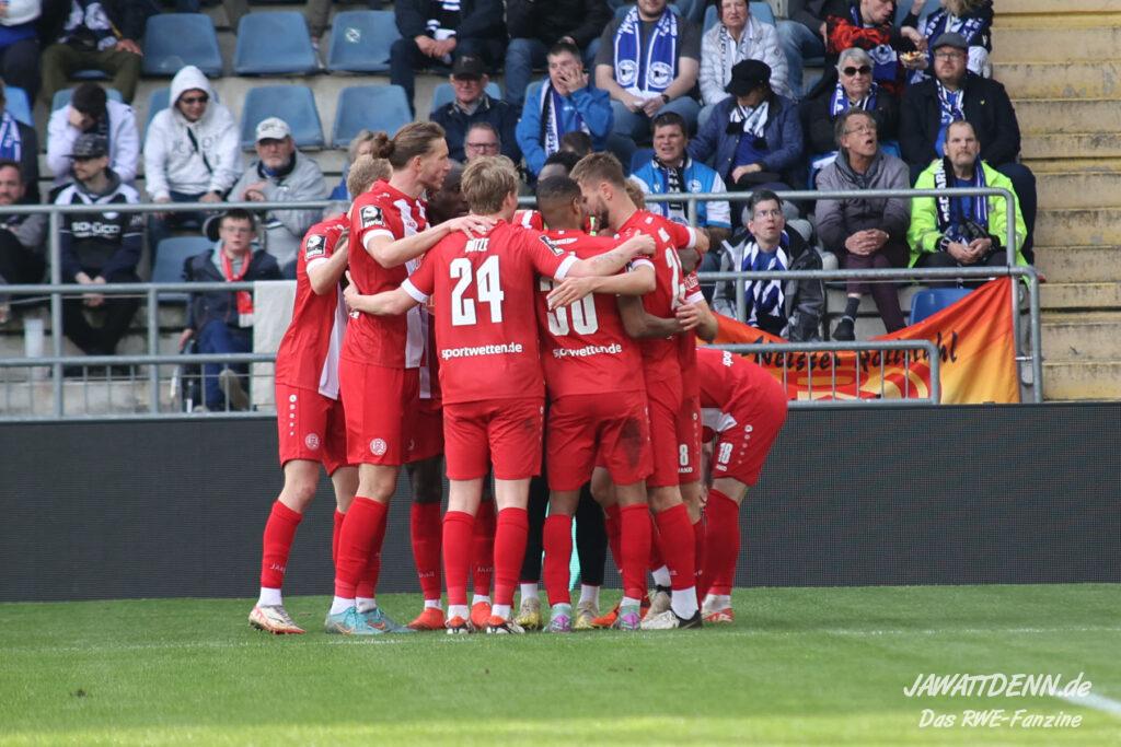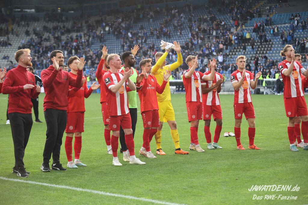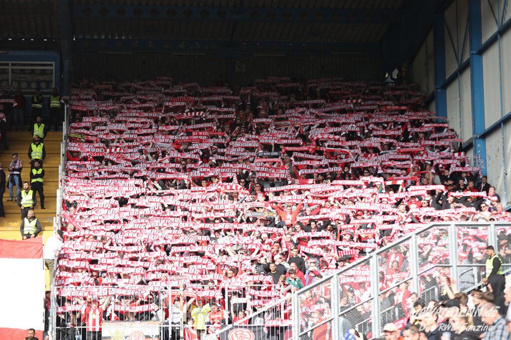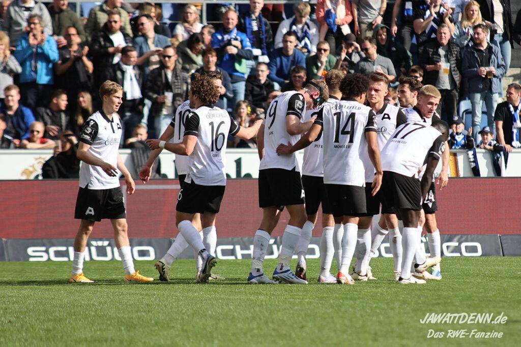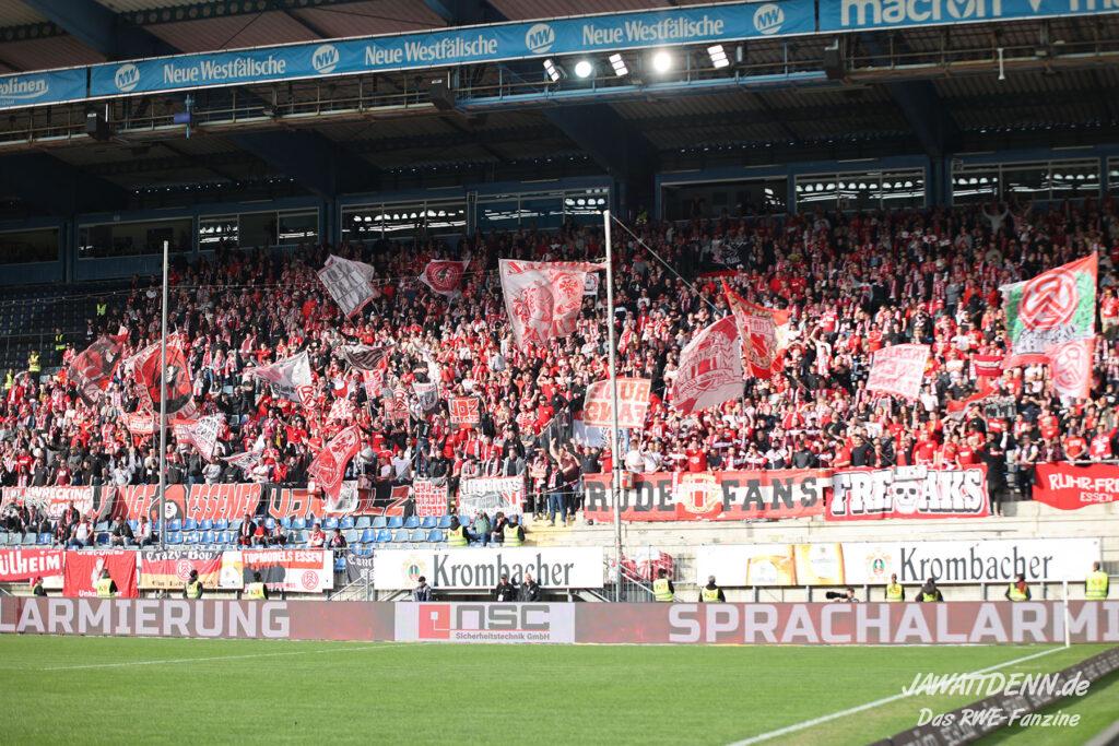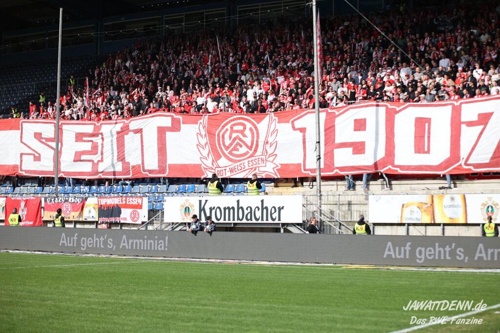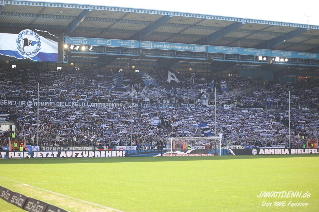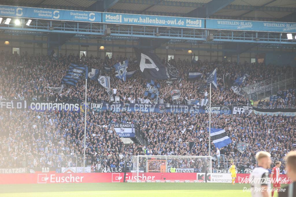 Es war Bundesliga-Atmosphäre auf der Bielefelder Alm und RWE konnte auch hier bestehen. Am Ende teilte sich Tradition die Punkte. Die gut 3000 RWE-Anhänger, die optisch und akustisch einen starken Auftritt hinlegten, feierten ihr Team jedenfalls nach dem Schlusspfiff. Der Auswärtszähler war angesichts der Ergebnisse der Konkurrenz durchaus etwas wert.