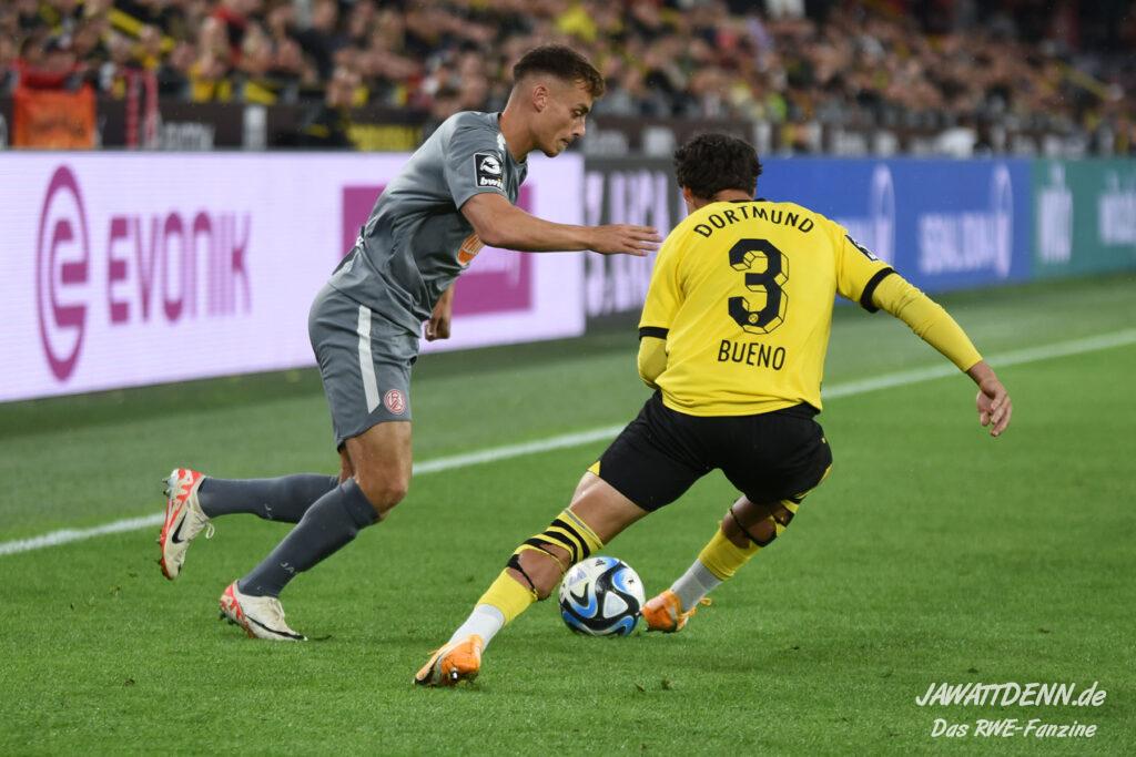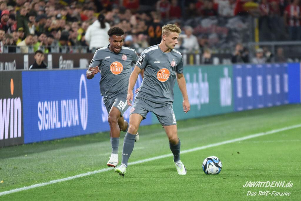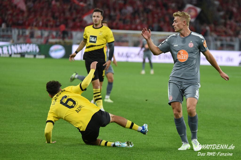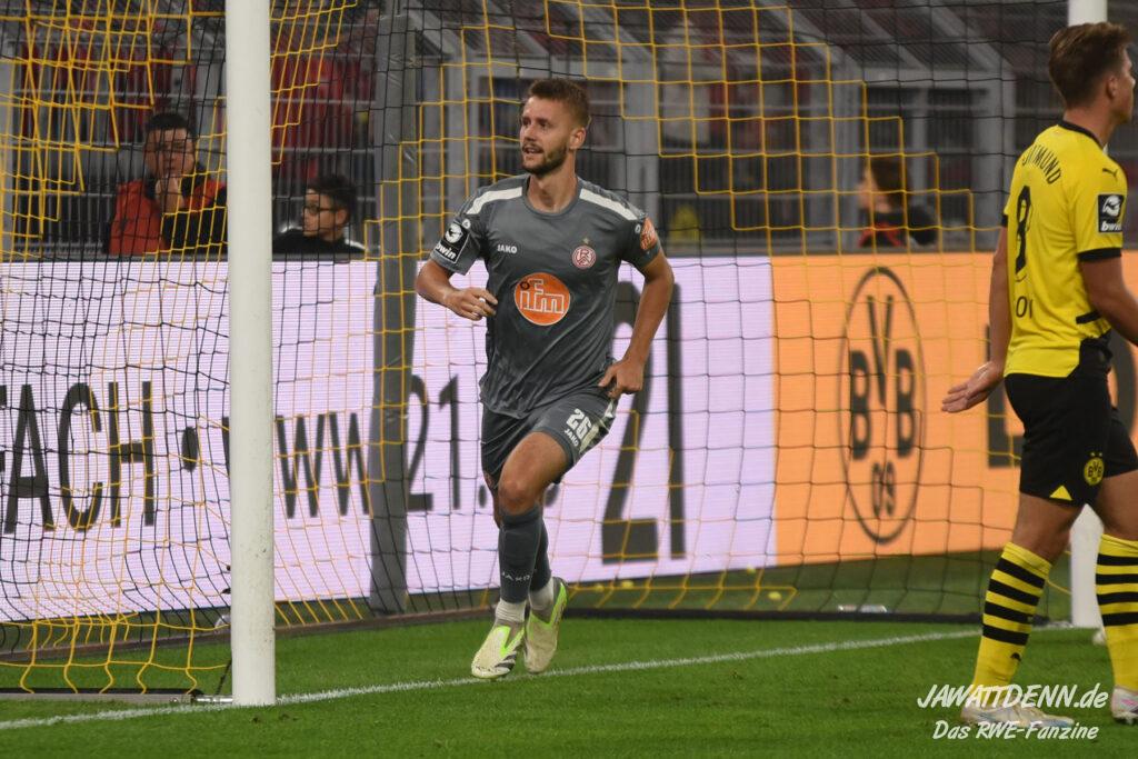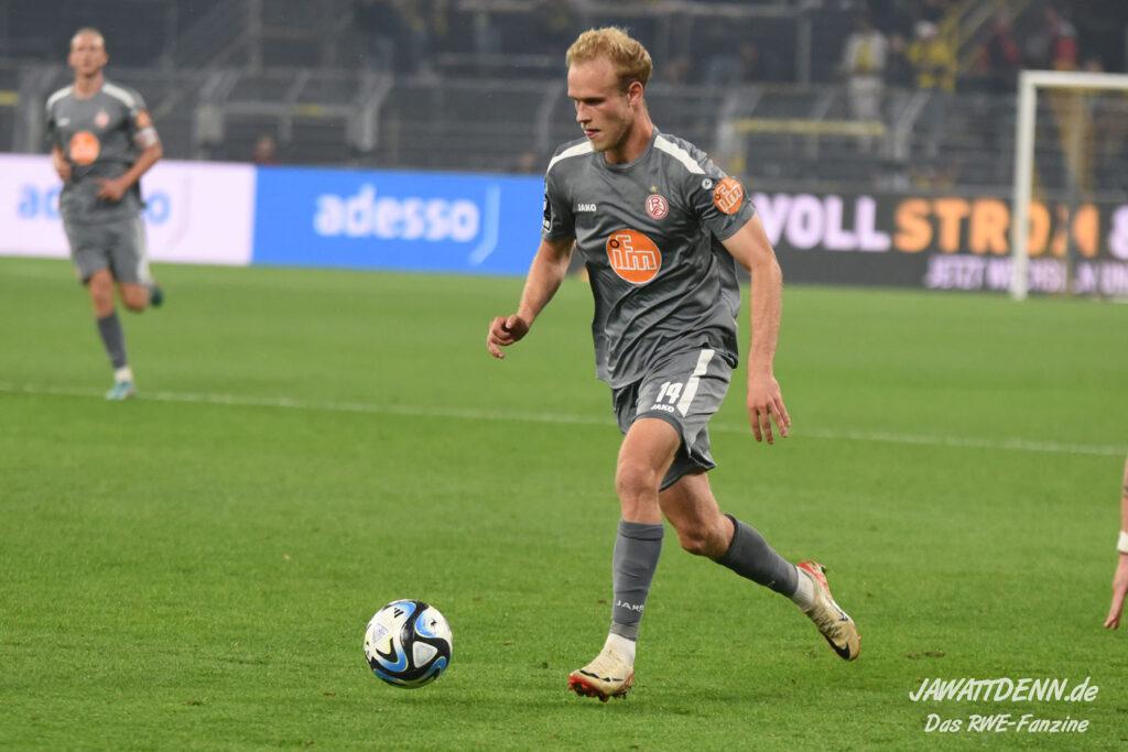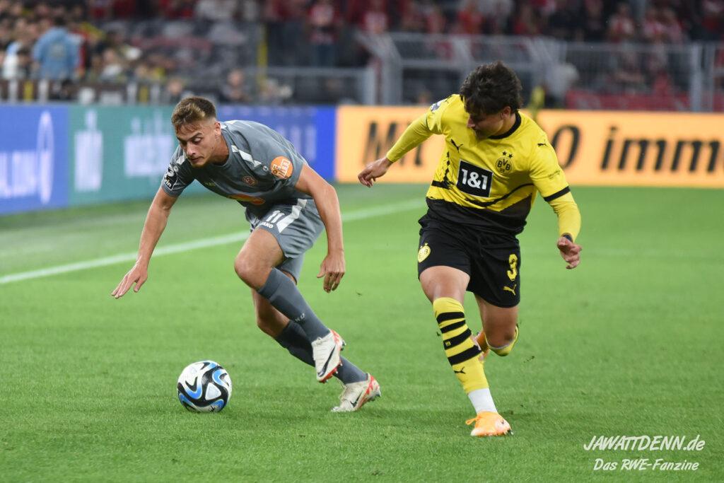 Eric Voufack vertrat Andreas Wiegel formidabel und sicherte sich auch einen Scorerpunkt durch den Eckstoß zum 1:0. Dennoch hätte sich der Youngster wohl sehr geärgert, hätte sein Einsteigen gegen Bueno einen weiteren BVB-Strafstoß zur Folge gehabt, hier muss Voufack noch etwas abgezockter werden, zeigt aber insgesamt eine positive Entwicklung. Wenn es ansonsten Knackpunkte gab, so darf man höchstens ansprechen, dass RWE in den Schlussminuten, als der BVB alles nach vorne warf, kaum zweite Bälle gewinnen und für Entlastung sorgen konnte, in der Box aber dann alles kompakt verteidigte.