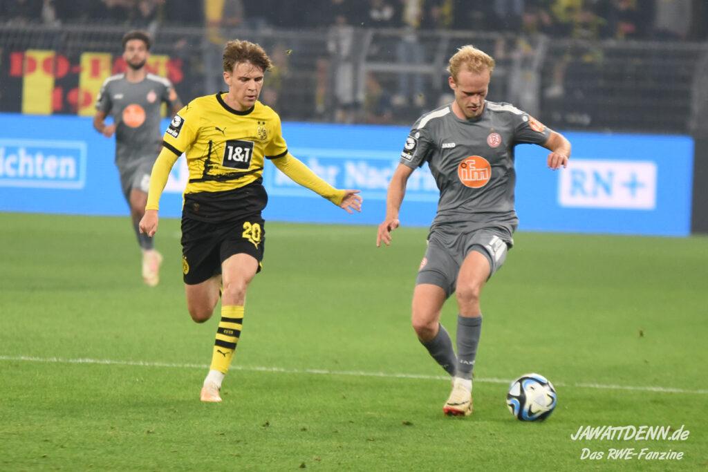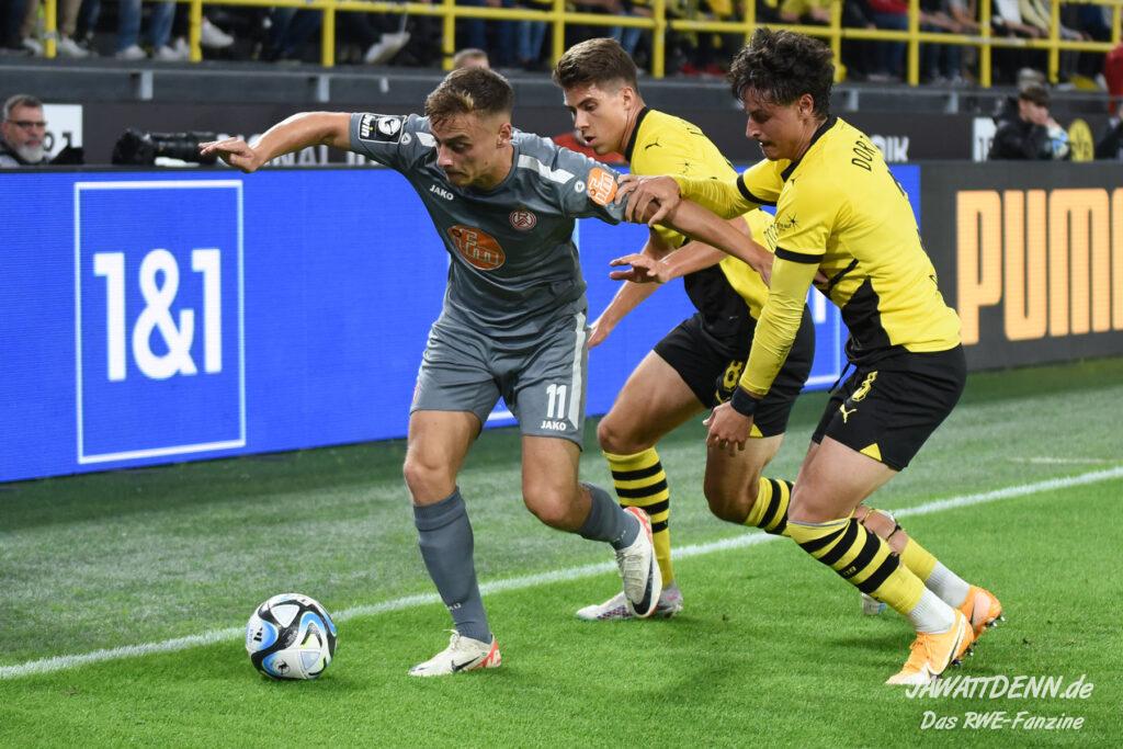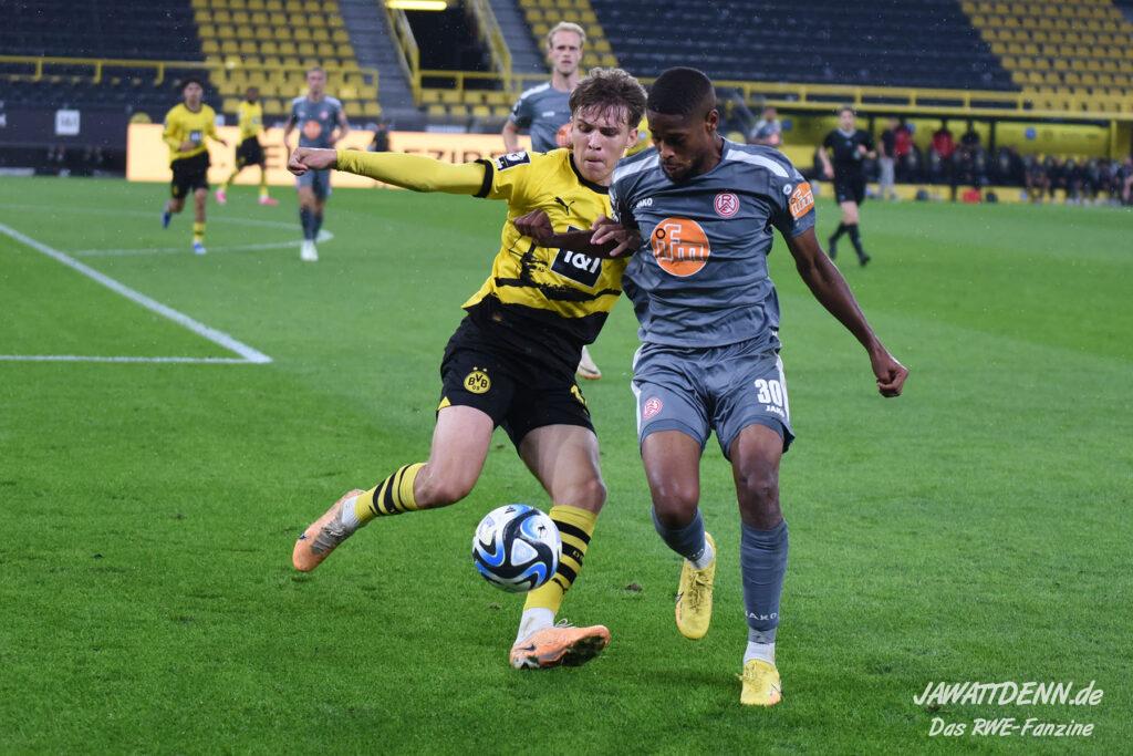 Auch beim BVB 2 fand wie in Freiburg ein erhöhter Personalaustausch statt. So kehrte zum Beispiel das Sturmtalent Justin Njinmah nach Bremen zurück, der noch im letzten Winter von Verl abgeworbene Akono wechselte zu seinem ehemaligen Klub nach Lübeck und Verteidiger Can Özkan wurde von Arminia Bielefeld abgeworben. Erstaunlicherweise wechseln aber auch Spieler zu einer U23-Mannschaft, obwohl sie zuvor mit reichlich Talent in der Liga bereits für Aufsehen gesorgt haben. Namentlich zu nennen wäre da der schnelle Stürmer Julian Hettwer, der in einem schwierigen Duisburger Umfeld bereits überzeugen konnte und derzeit die interne Scorerwertung der Schwarz-Gelben anführt. Auch Paul-Phillipp Besong kehrte nach Profistationen in Nürnberg und Aue ins Ruhrgebiet zurück. Angetrieben wird die Mannschaft im Mittelfeld von den „Routiniers“ Franz Pfanne und Michael Eberwein, im Tor steht der eigentlich zum Profikader gehörende Marcel Lotka. Auch die in den Profikader gewechselten Antonios Papadopoulos (5 Einsätze) bzw. Ole Pohlmann (9 Einsätze) zählen noch regelmäßig zum Aufgebot der U23.