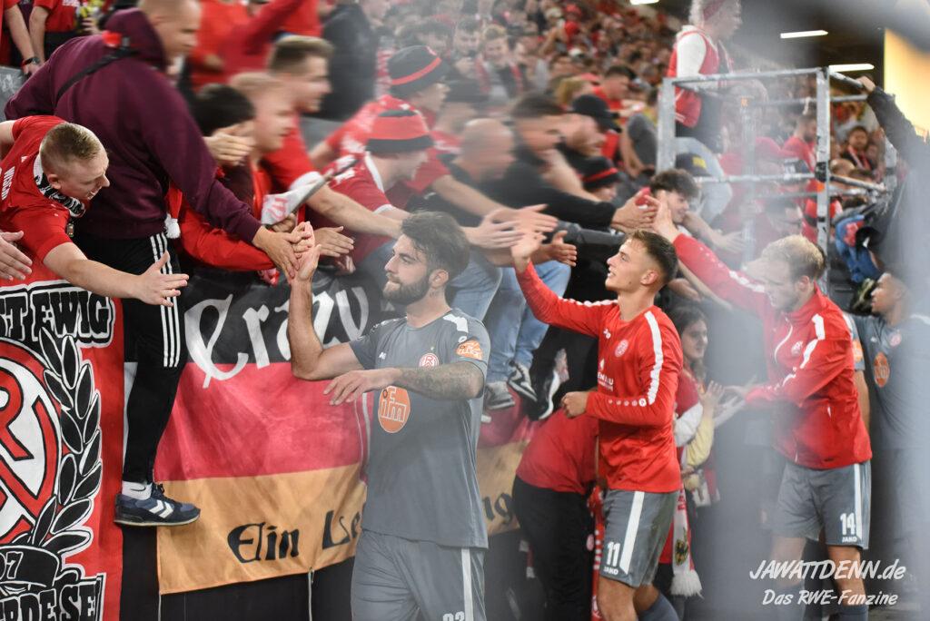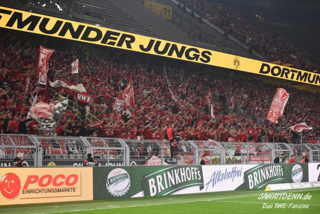 Zwar ist die einstige enge Verbundenheit nach Dortmund nicht mehr ganz so groß wie früher und eher einer Neutralität gewichen, aber man hat immer noch einen gemeinsamen Lieblingsfeind, den beide Fanlager vor Anpfiff besangen. Der Auftritt auch der RWE-Fans war der Wahnsinn. Trotz der herben Pleite gegen Verl, die wütende Pfiffe nach sich gezogen hatte, stand die rot-weisse Wand vollkommen hinter ihrer Mannschaft und bejubelte und behupte den Mannschaftsbus schon bei Ankunft am Stadion. Die Stimmung und Unterstützung, die auch via Magenta in die deutschen Wohnzimmer getragen wurde, war eine Werbung für den Kultklub Rot-Weiss Essen. Der empfängt am nächsten Spieltag den 1. FC Saarbrücken an der heimischen Hafenstraße und will dann weiter in der Erfolgsspur bleiben.