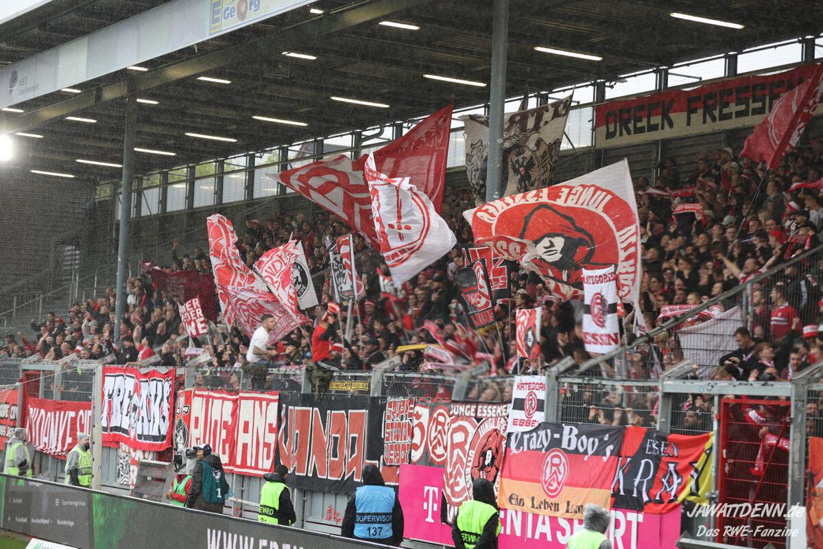 Die rot-weisse Siegesserie ist gerissen und es bleibt der bittere Beigeschmack, dass eine Fortsetzung an diesem Samstagnachmittag durchaus möglich gewesen wäre. Durch die 2:1-Niederlage gibt RWE den dritten Platz an den SC Verl ab und muss nächste Woche aufgrund der gelb-roten Karte auch noch auf Felix Götze verzichten. Passend zum gebrauchten Nachmittag verpassten Hunderte Essener Schlachtenbummler die erste Halbzeit aufgrund von Anreiseproblemen mit der Bahn.