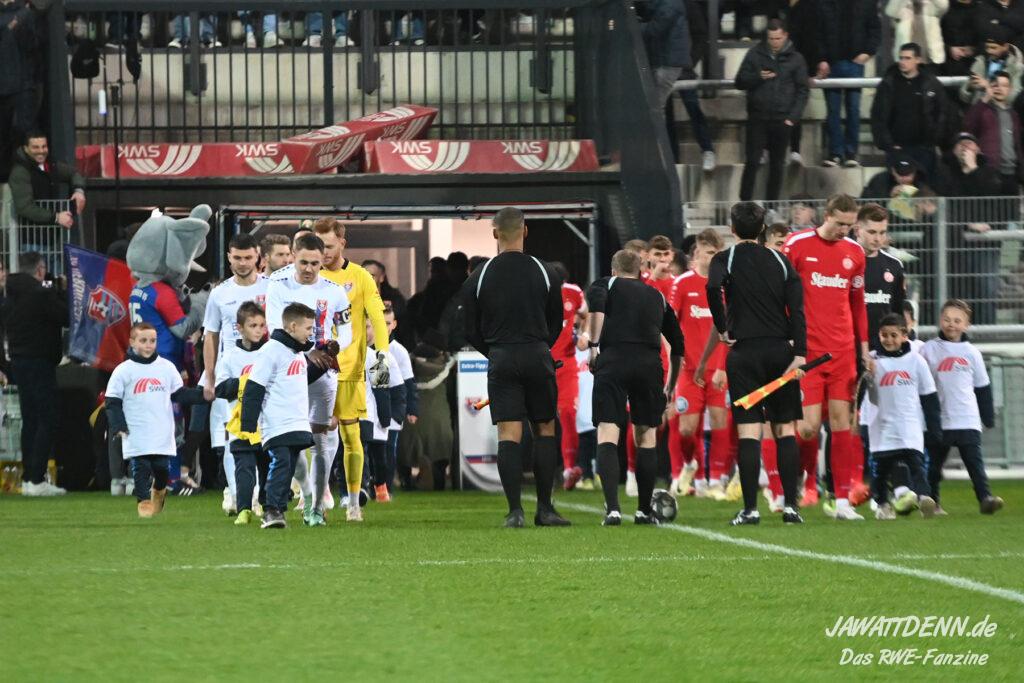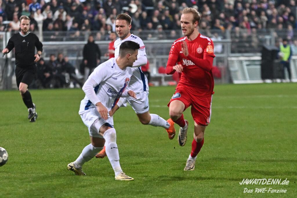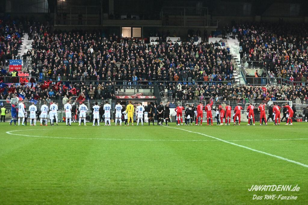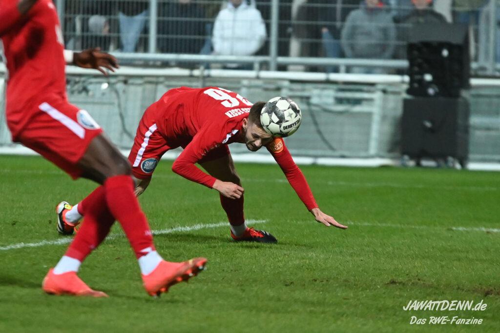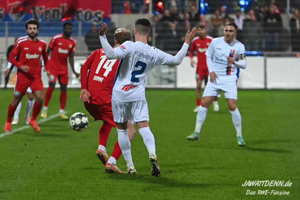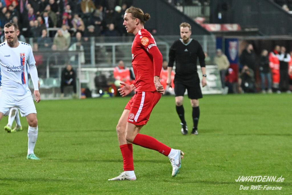 In jeder Hinsicht kann RWE froh sein, die Niederrungen des Amateurbereichs hinter sich gelassen zu haben. Auch wenn über die Schiedsrichter in der Dritten Liga gemeckert werden kann, so häufig, wie das Fähnchen am Seitenrand gehoben wird, nur weil der Verdacht auf Abseits besteht und der Assistent mal wieder zu langsam ist, kommt eher weniger im Ligaalltag vor. Zum Glück hatte sich dies nahezu auf beiden Seiten ausgeglichen.