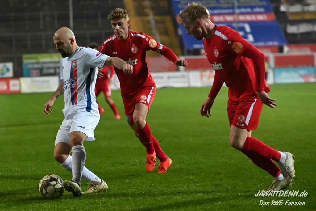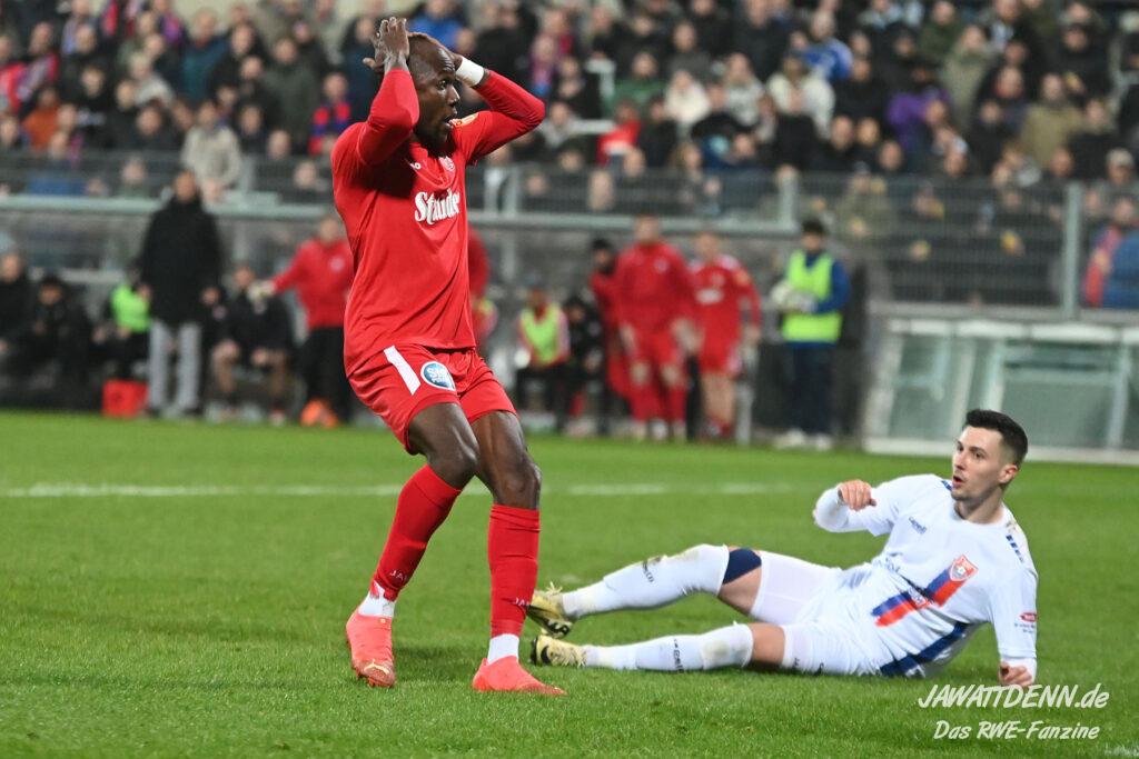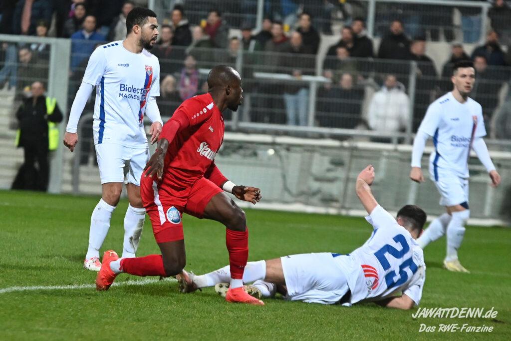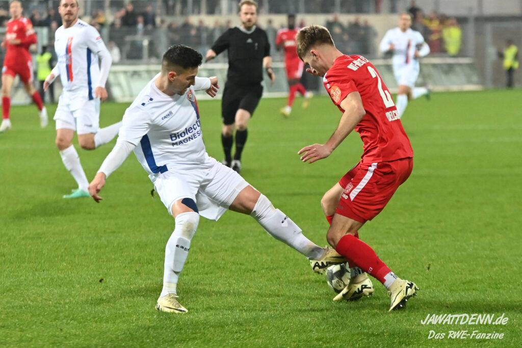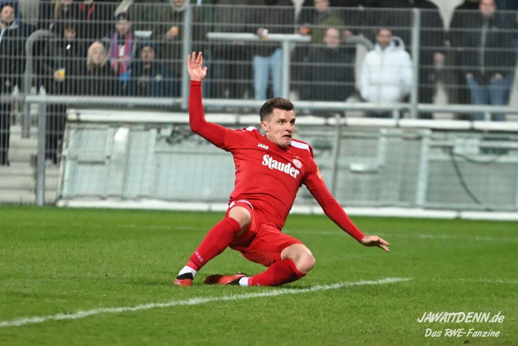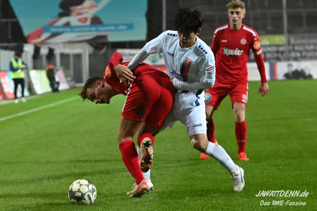 In jeder Hinsicht kann RWE froh sein, die Niederrungen des Amateurbereichs hinter sich gelassen zu haben. Auch wenn über die Schiedsrichter in der Dritten Liga gemeckert werden kann, so häufig, wie das Fähnchen am Seitenrand gehoben wird, nur weil der Verdacht auf Abseits besteht und der Assistent mal wieder zu langsam ist, kommt eher weniger im Ligaalltag vor. Zum Glück hatte sich dies nahezu auf beiden Seiten ausgeglichen.