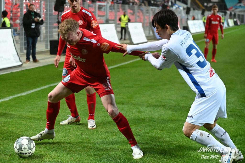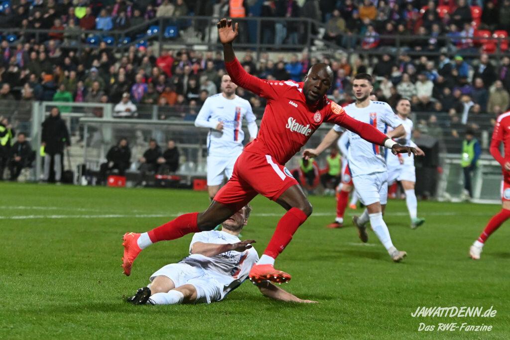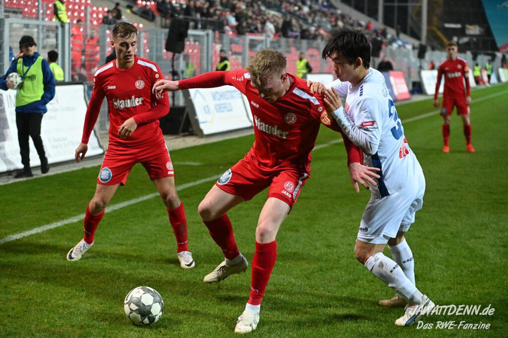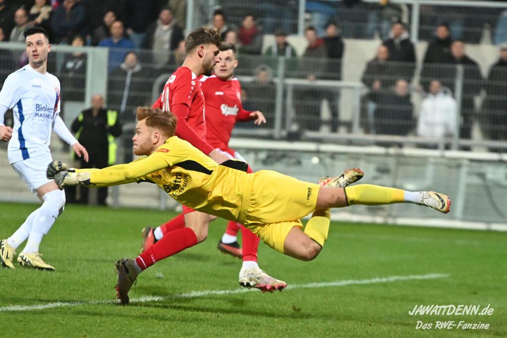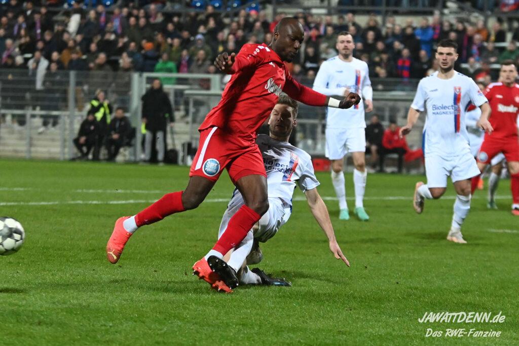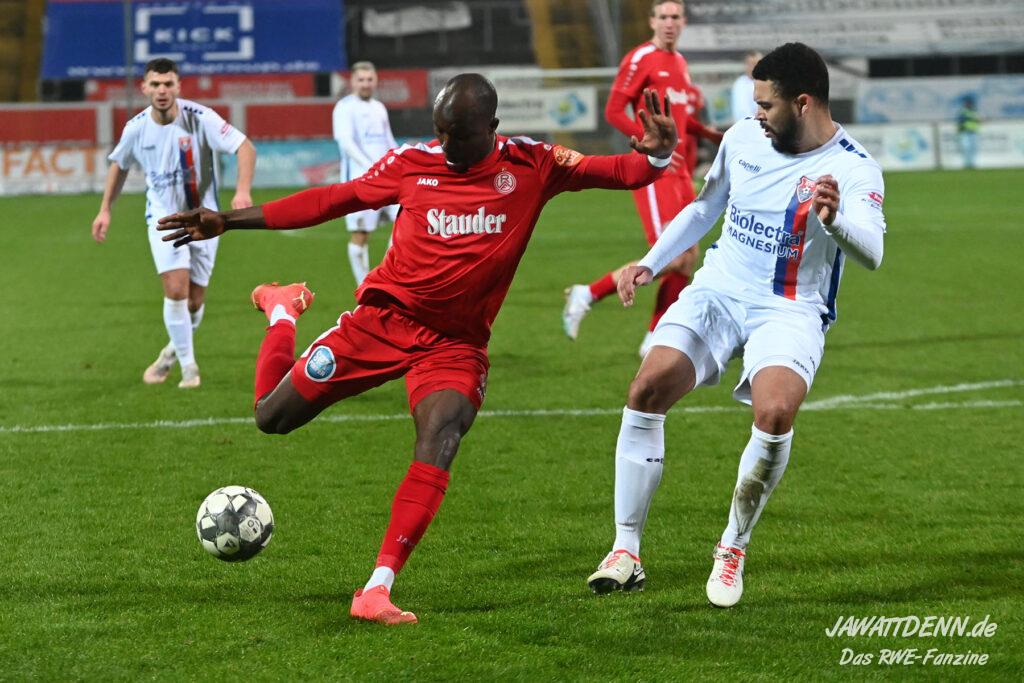 In jeder Hinsicht kann RWE froh sein, die Niederrungen des Amateurbereichs hinter sich gelassen zu haben. Auch wenn über die Schiedsrichter in der Dritten Liga gemeckert werden kann, so häufig, wie das Fähnchen am Seitenrand gehoben wird, nur weil der Verdacht auf Abseits besteht und der Assistent mal wieder zu langsam ist, kommt eher weniger im Ligaalltag vor. Zum Glück hatte sich dies nahezu auf beiden Seiten ausgeglichen.