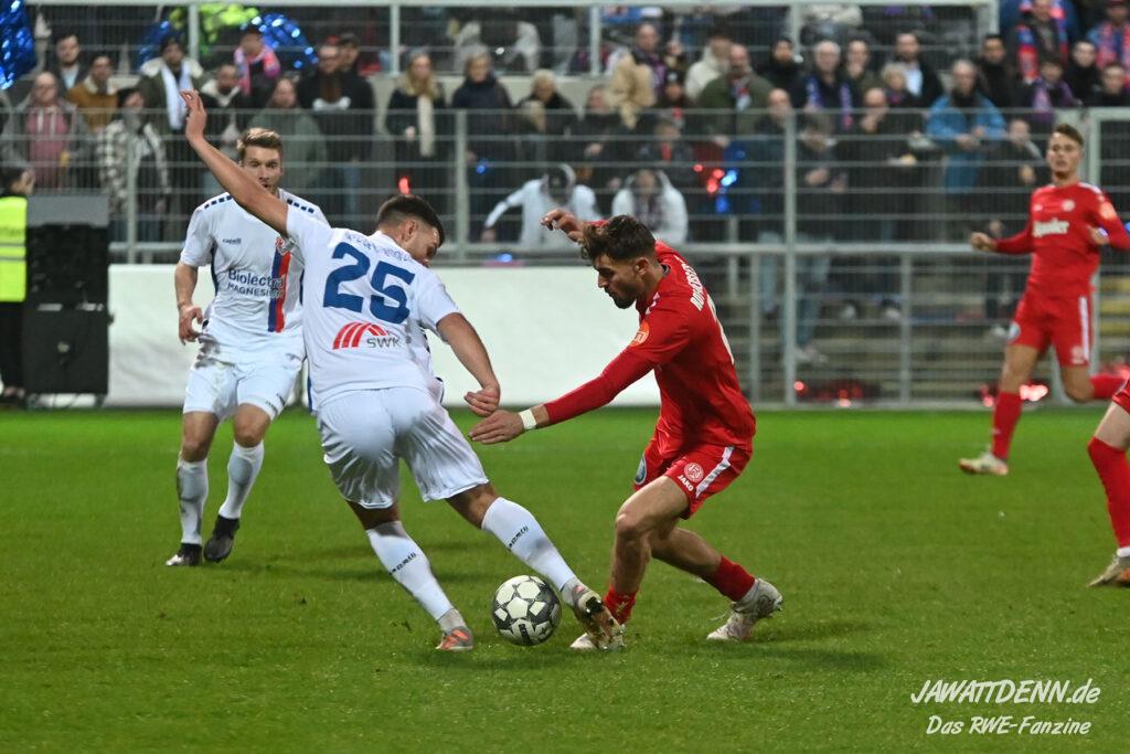 Erkenntnisse aus Pokalspielen gegen niederklassige Gegner zu ziehen ist immer schwer. Allerdings muss sich RWE in der Defensive gehörig steigern. Es kann nicht nur sein, sich auf die Rückkehr von Götze zu verlassen, der natürlich einer der besten Innenverteidiger der Dritten Liga ist, aber auch mit ihm ist die Abwehr im Gegensatz zur Vorrunde anfälliger geworden. Auch ein Sapina in Normalform wird gebraucht, da er mit seiner Zweikampfstärke vor dem Strafraum wichtig ist, Angriffe vor den gefährlichen Räumen im Keim ersticken kann. Am wichtigsten ist aber, dass alle in der Viererkette zu alter Form zurückfinden, hier ist auch das Trainerteam gefragt. Denn es macht nicht nur Spaß, Festungen zu erstürmen, sondern auch selbst eine aufzubauen!
