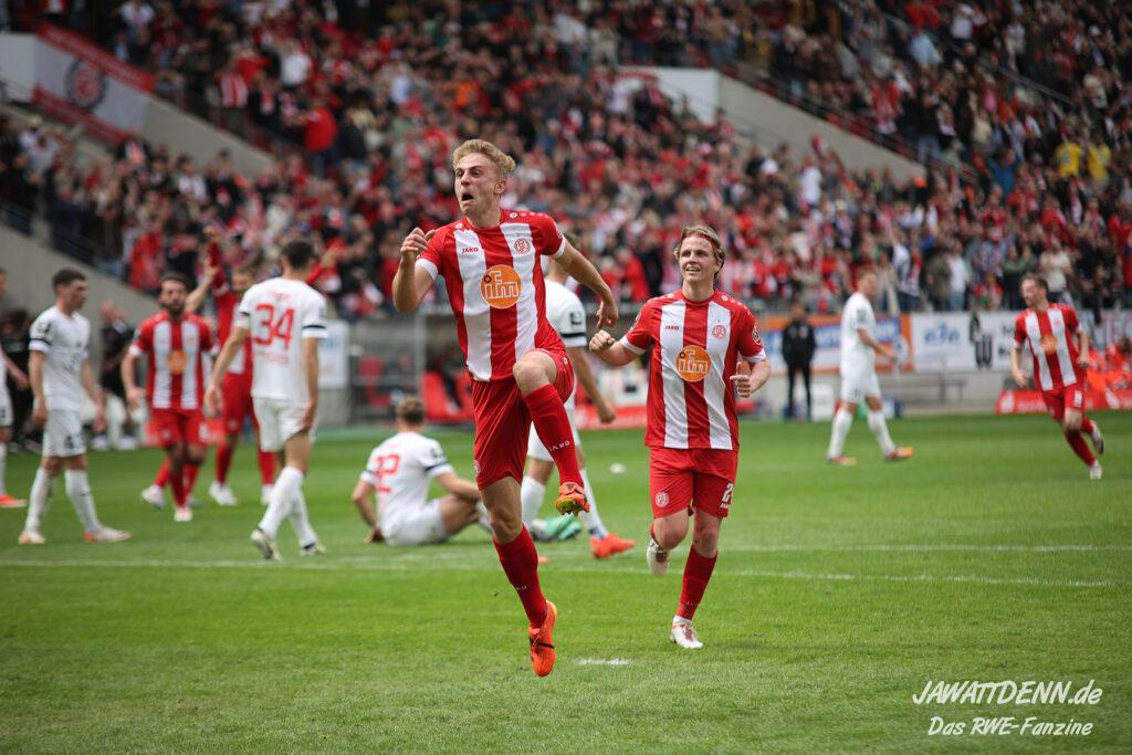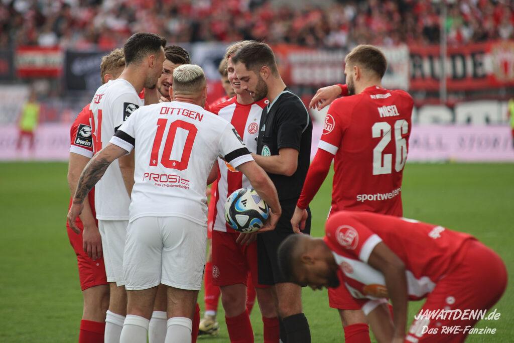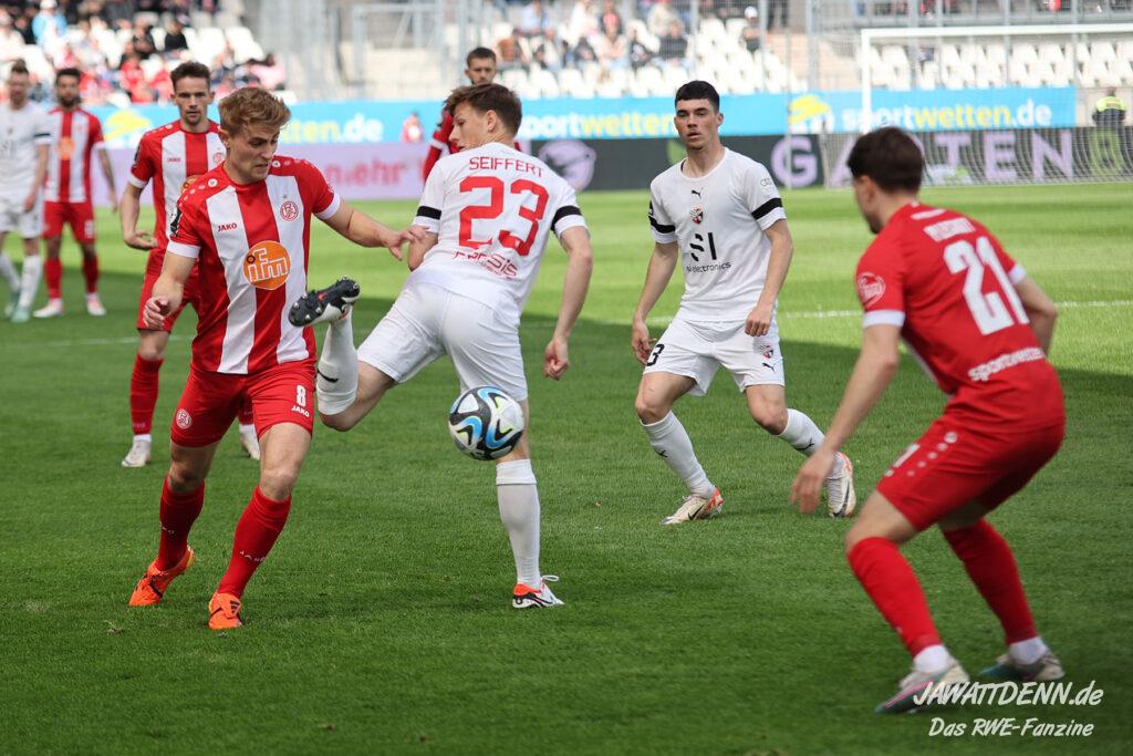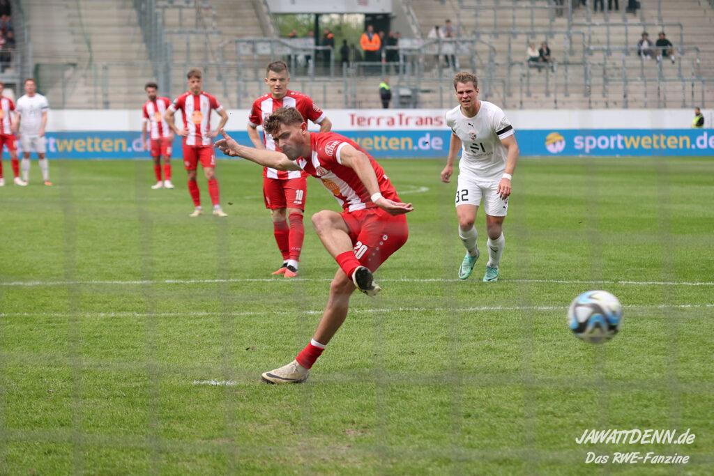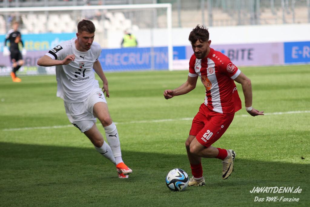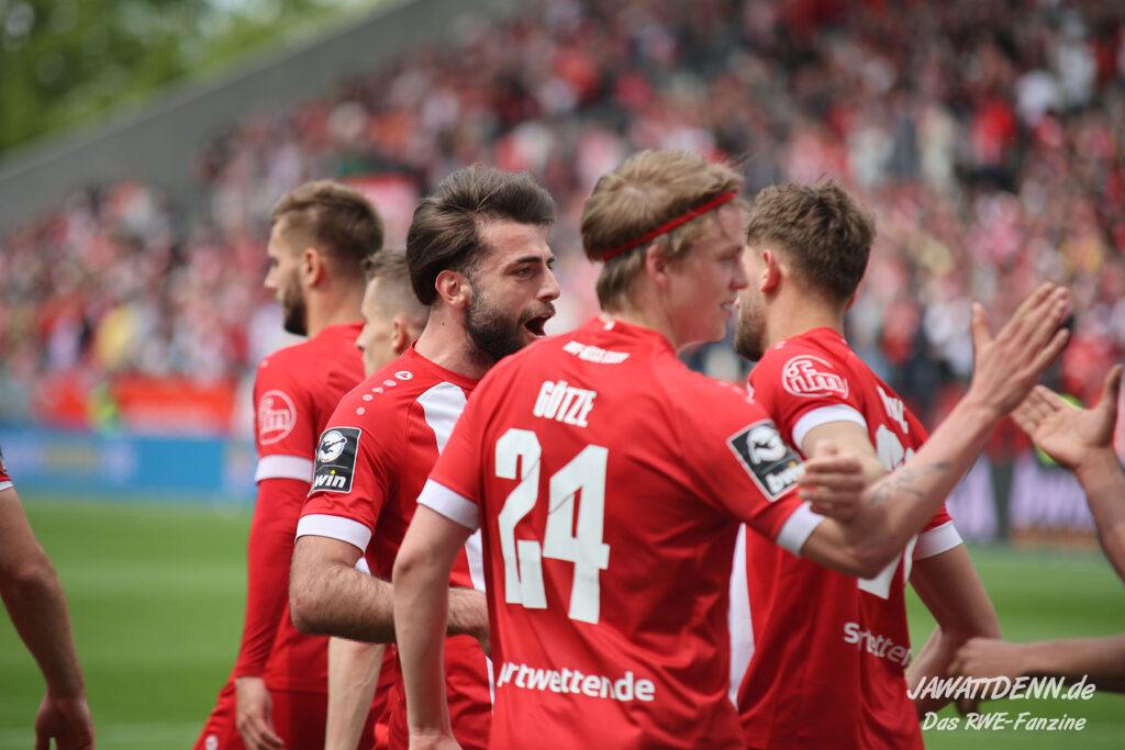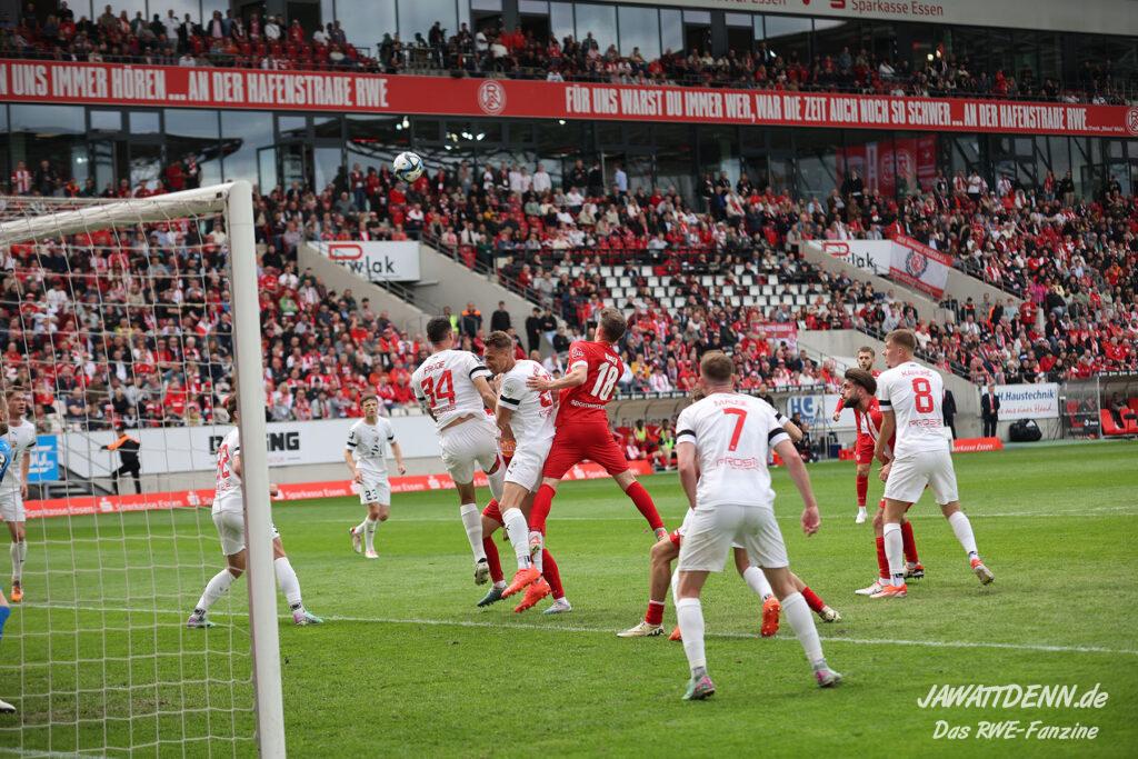 Es gab sehr wenig auszusetzen an einem couragierten Auftritt, der einen ungefährdeten und deutlichen Erfolg hervorbrachte. Dieser hätte höchstens noch ein bis zwei Tore höher ausfallen können, doch RWE vergab noch einige gute Möglichkeiten. Etwas schimpfen musste man kurz vor dem Ende mit Felix Götze, der gegen den eher wie eine Ratte auftretenden Jannik Mause aufgrund einer Revancheaktion auch die Rote Karte hätte sehen können. Doch Schiedsrichter Christian Ballweg zückte nur Gelb (siehe Aufreger).