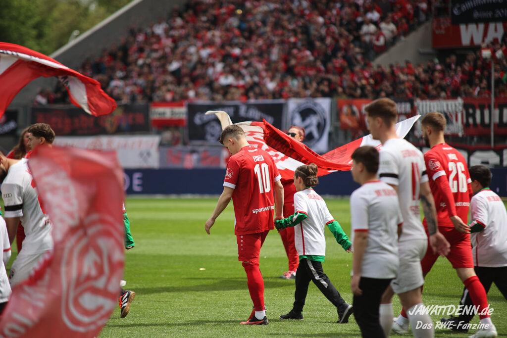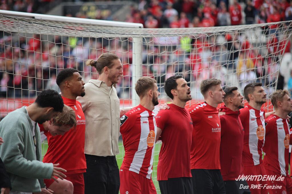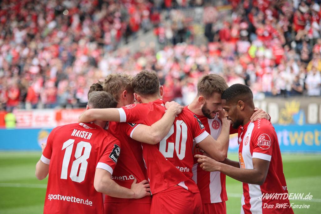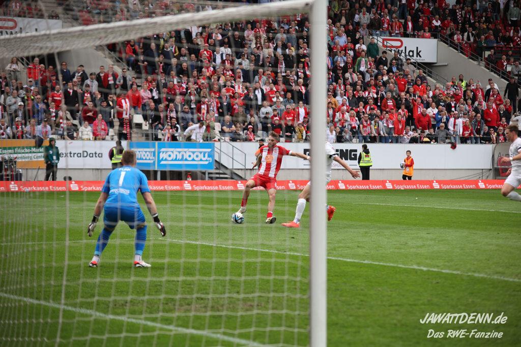Der Traum lebt! Im Endspurt der Dritten Liga wirkt RWE quicklebendig und energiegeladen. Vor Saisonbeginn galt Gegner Ingolstadt als einer der Toppfavoriten auf den Aufstieg, auch weil man Dank des Audi-Sponsorings ohne operatives Risiko mit großen Mitteln in die Liga starten durfte. Es tut einfach nur gut zu sehen, wie ein uninspirierter Plastikklub von RWE förmlich vermöbelt wurde. Wohlgemerkt von einer Essener Elf, die aktuell fast nur aus Spielern der Vorsaison besteht, die leidenschaftlich liefern. RWE steht nun auf Platz 4, 3 Punkte hinter dem Relegationsrang und 4 Punkte hinter dem direkten Aufstiegsplatz 2. Diesen starken Auftritt hat die Konkurrenz wahrgenommen und spürt Essens Atem im Nacken.