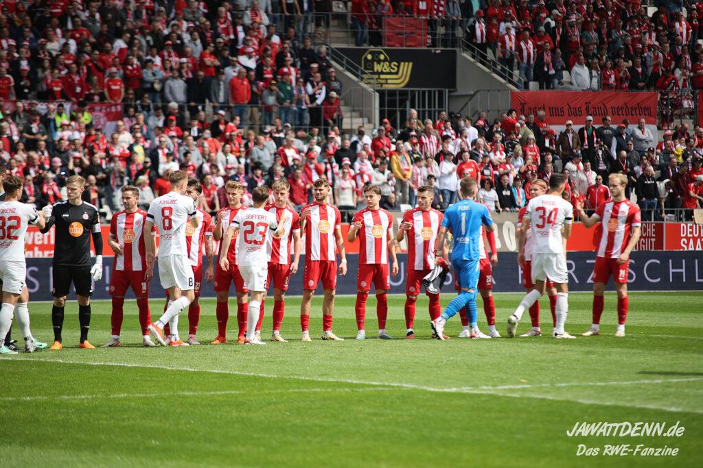 Zusammenfassend lief der Spieltag aus RWE-Sicht richtig gut und die Essener können bei einem Sieg richtig dick in den Aufstiegskampf eingreifen. Im Spitzenspiel von Dynamo Dresden bei Jahn Regensburg, sah es so aus, als wäre Dresden nach einem Kutschke-Kopfball auf der Siegerstraße, bis Regensburg ausglich.