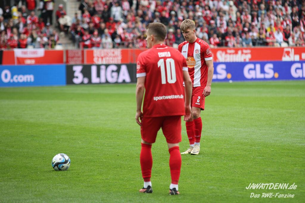 Im Vergleich zum Nachholspiel unter der Woche hat sich personell nichts geändert. Ein Einsatz Vinko Sapinas kommt noch zu früh, sodass die Mittelfeldzentrale wahrscheinlich wieder aus dem immer stärker werdenden Thomas Eisfeld, dem ebenfalls durchstartenden Torben Müsel und dem RWE-Goalgetter Cedric Harenbrock bestehen wird.