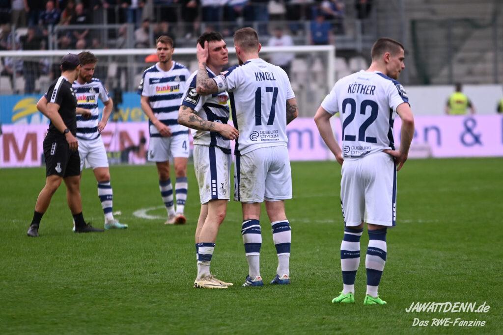 Natürlich möchte jeder gerne den anderen am folgenden Montag am Arbeitsplatz eine lange Nase zeigen, aber hier geht es um das Überleben eines Traditionsvereins, der vor einer sehr ungewissen Zukunft steht. Zwar wurde eine Einigung mit dem Sponsor „Schauinsland-Reisen“ bezüglich des Darlehens erzielt, aber vor allem die jungen Spieler zieht es aus Duisburg weg. Caspar Jander wechselt nach der Saison zum 1. FC Nürnberg, andere wie z.B. Baran Mogultay bringen sich teilweise selbst schon bei anderen Vereinen ins Gespräch. Wie die Saison auch ausgehen mag, die Zukunft des Traditionsklubs scheint trotz des ausgegebenen Ziels von Präsident Ingo Wald, 2025 wieder in der 2. Liga spielen zu wollen, wenig rosig auszusehen.