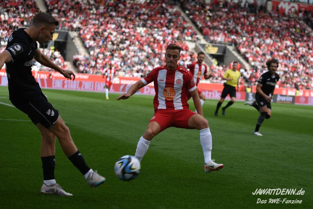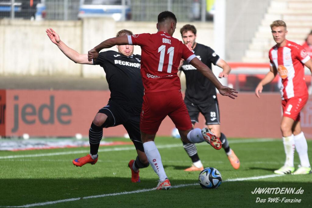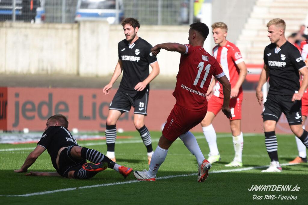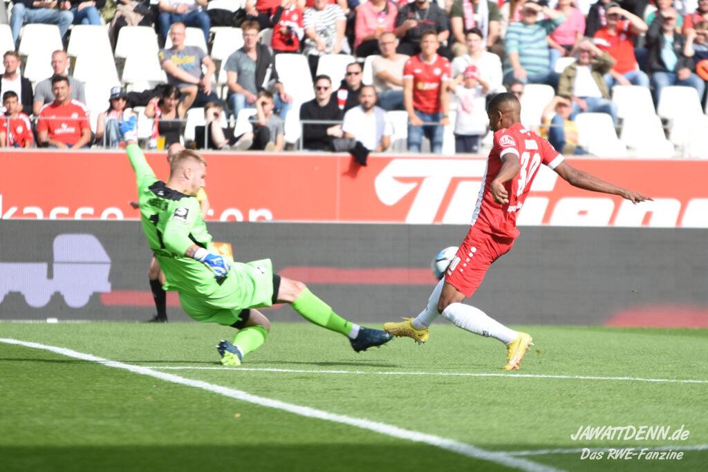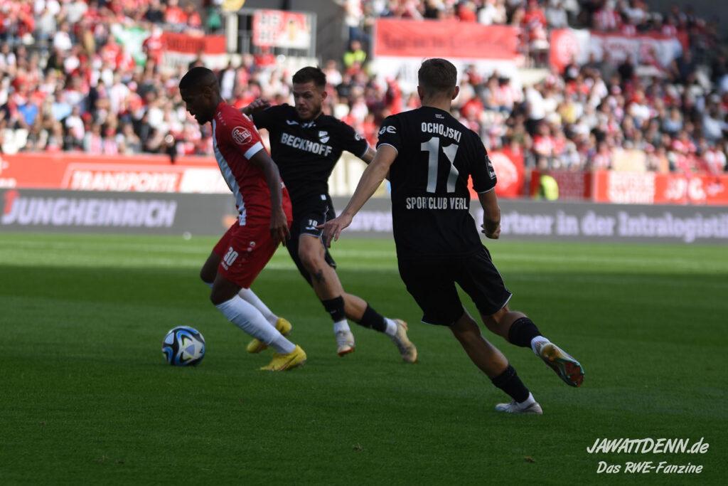 Dabei muss man zwischen dem rundum gebrauchten Tag in Unterhaching und dem Spielverlauf gegen Verl unterscheiden, denn die 1:0-Halbzeitführung der Verler war durchaus schmeichelhaft. Marvin Obuz hätte mit dem Pausenpfiff den Ausgleich erzielen müssen. RWE war gut ins Spiel gekommen, hatte viele Spielanteile und Standardsituationen, strahlte dabei jedoch seine mittlerweile bekannte Harmlosigkeit vor dem gegnerischen Gehäuse aus.