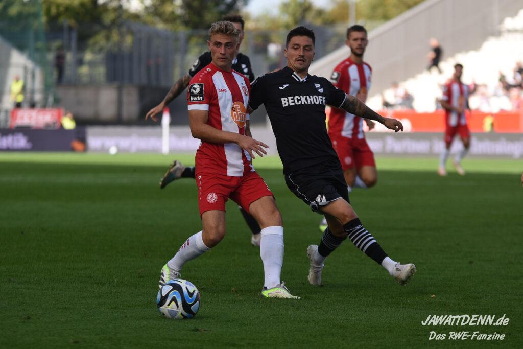 Der SC Verl kommt mit einer ganz anderen Gemütslage an die Essener Hafenstraße als die gastgebenden Rot-Weissen. Denn der 3:1 Sieg im OWL-Derby gegen Arminia Bielefeld dürfte die schwarz-weiße Brust deutlich anschwellen lassen haben. Dabei spielte der Sportclub gegen die favorisierten Arminen ähnlich wie RWE gegen Dresden ziemlich effizient und fußballerisch nicht so dominant wie man eigentlich auftreten will. Bielefeld machte das Spiel, Verl die Tore. Dabei eines schöner als das andere.
